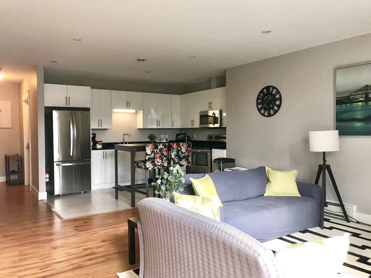 Enjoy a stylish experience at this centrally located basement suite. Designer finishes in this 1 bedroom plus sleeper sofa is ideal for a small group who wants a smaller, yet thoughtful place, close to downtown. Not missing a beat, this Garden Suite has everything you need for a comfortable stay: - fully stocked kitchen - spacious bathroom - living room with a 50" smart tv - comfortable queen bed & awesome flop out queen sofa (thick mattress) The best part - it has FREE parking.