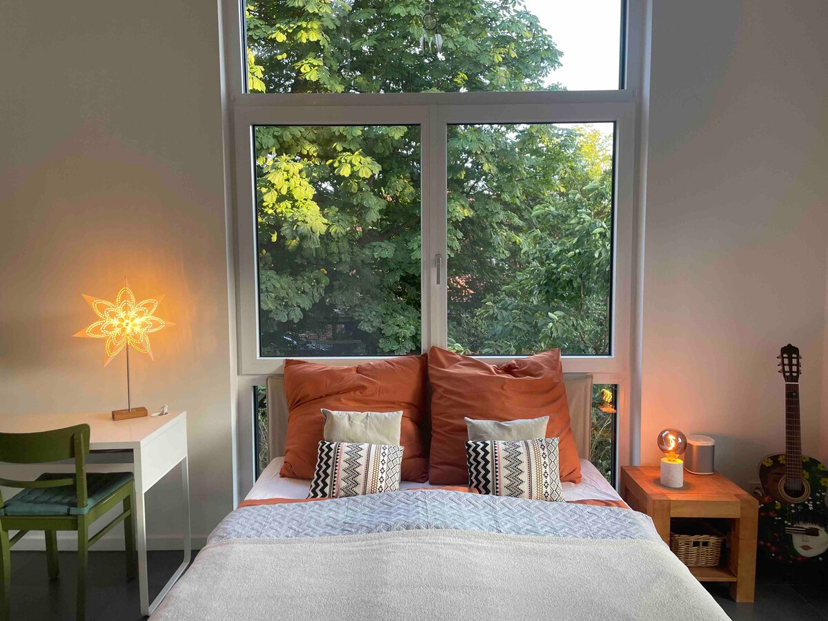 Endaweni ethulile, eluhlaza yase-Hamburg Heimfeld, ngemoto noma nge-S-Bahn eseduze nemizuzu engu-20 kuphela ukusuka ESITESHINI esikhulu sesitimela, i-Alster, idolobha noma i-Hafencity, iyifulethi lethu elihle elingamamitha-skwele angu-95 elikhulu lesakhiwo esidala elinamakamelo amathathu kanye nenhlanganisela yefenisha yomklamo wakudala nowesimanje kanye ne-balcony, i-sauna nesihlalo sokubhucunga umzimba esiphumuzayo. Indawo yokupaka ekahle, yamahhala endlini, izitolo zezidingo zansuku zonke, ikhemisi nendawo yokubhaka kanye nehlathi elikhulu eliqhele ngezinyawo