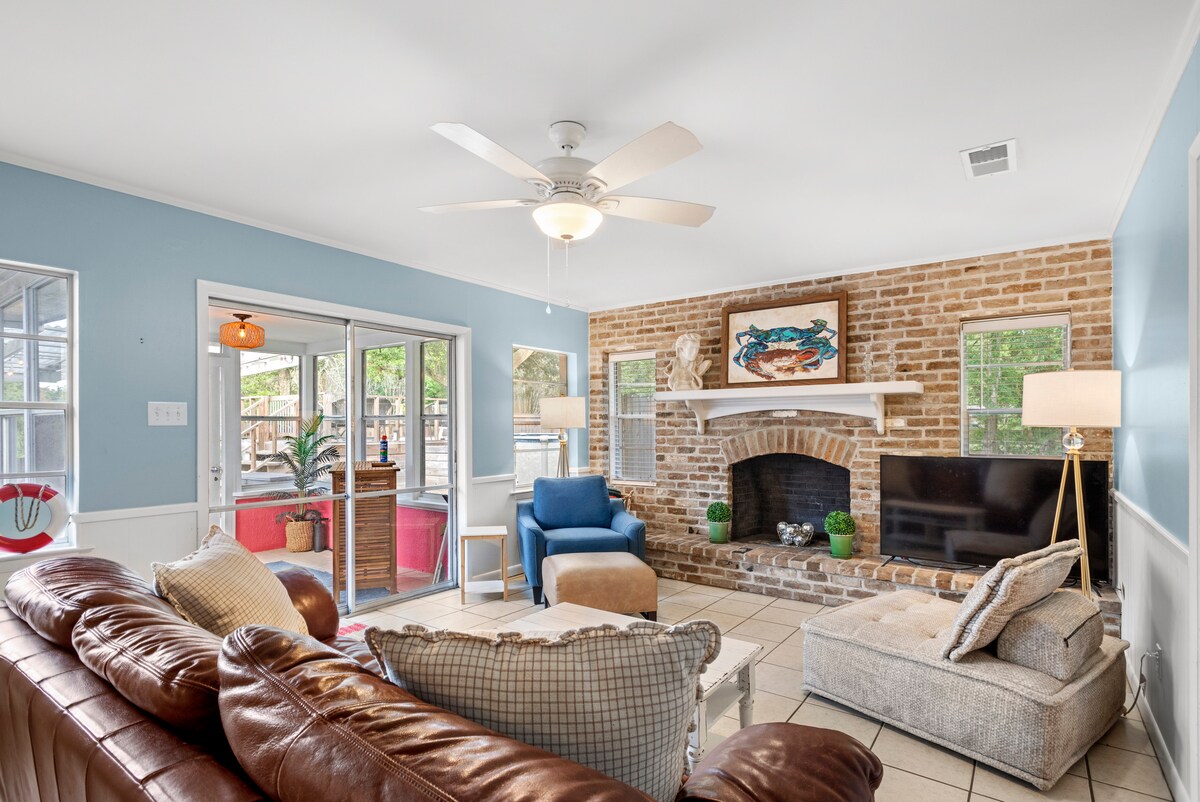 Jabulela ikhaya elisha lokwakha w/ amahle kanye nendawo yangaphandle ye-patio 1 ebhishi naseduze nedolobha!! Amakamelo e-King angu-2 namakamelo e-Queen angu-2 kanye nombhede ogcwele we-Murphy endaweni yegumbi lokuphumula. Ibhishi/Ukubukwa kwamanzi kuyizinyathelo nje ukusuka emnyango wangaphambili, futhi kusuka egcekeni elingemuva, futhi uhamba ngezinyawo eziseceleni ukuya ebhishi (ngaphesheya nje kwe-Hwy 90) kanye nezindawo zokudlela ezifana ne-Chimneys, Salute’, kanye ne-Shaggy' s! Igalaji lemoto le-2 kanye nokupaka emgwaqweni kuyatholakala kuze kufike ezimotweni ezingu-4 kanye neshaja ye-EV egaraji!