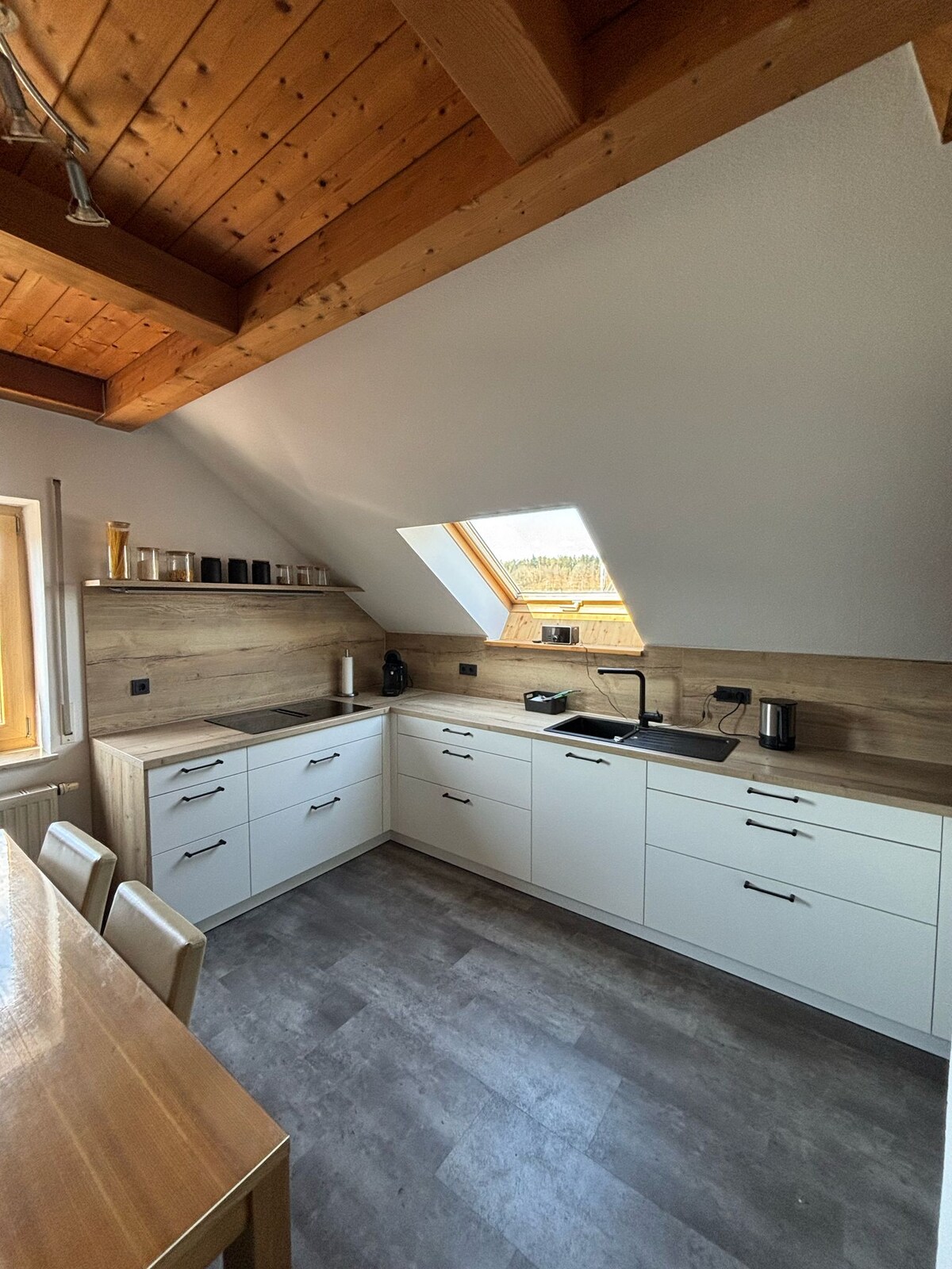 Siyakwamukela enkabeni yamachibi ase-Franconian! Ifulethi lethu elithokomele esitezi sesibili likunikeza indawo ekahle yokuphumula yezinsuku zokuphumula ezizungezwe imvelo. Kuqhele ngamakhilomitha angaba ngu-20 kuphela e-Brombachsee enhle. Idolobha elikhulu lase-Franconian lase-Nuremberg nalo lingafinyelelwa ngemoto ngemizuzu engaba ngu-45. Singumndeni othanda izilwane futhi sihlanganyela ikhaya lethu nabangane abanemilenze emine. Ngakho-ke sicela ukuqonda kwakho ukuthi izinwele zenja kufanele zilahleke yini naphezu kokuhlanza ngokucophelela.