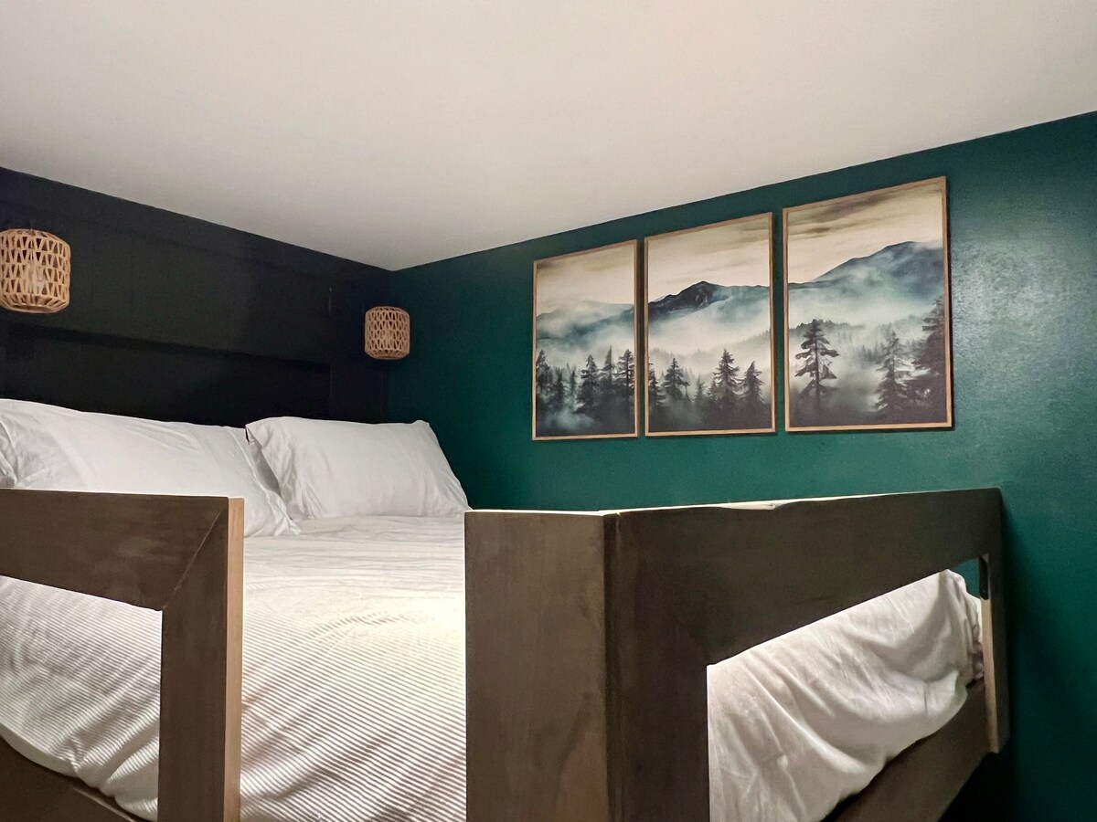Thanda uhlamvu nobuhle bale ndawo, ekhanyayo, esakhiweni esikhanyayo, esingokomlando kuyilapho ujabulela izibuyekezo zakamuva namasevisi esimanje ahlanganisa umshini wokugeza izitsha, amakhabethe amasha, upende omusha, ifenisha ebuyekeziwe namalineni amasha. Usofa olele neminyango ephaketheni egumbini lokuphumula isebenza njengegumbi lokulala lesibili elizimele. Nge-TV engu-50”nendawo yomlilo, leli ikamelo lethu lokulala elikhethayo! Ngaphandle kwekamelo lokulala eliyinhloko, uzothola indawo ehlukile yehhovisi enedeski nomnyango ongavalwa ukuze ibe yimfihlo.