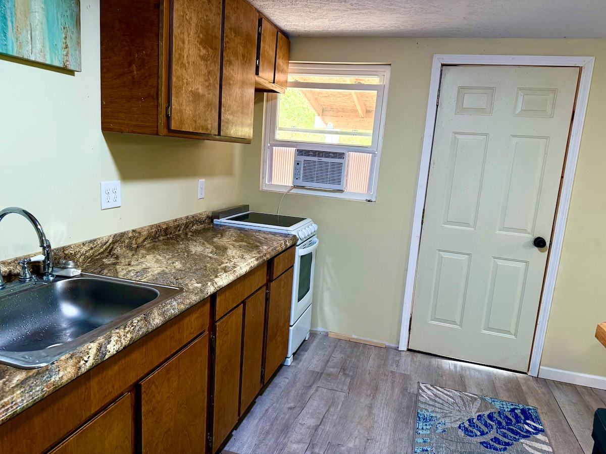 Phindela futhi uphumule kule ndawo enokuthula. Indlu yezivakashi inemibhede emibili emibili, indlu yokugezela yangasese, i-microwave, i-toaster, i-Keurig, ifriji elincane. Ukufinyelela kwe-WiFi, i-grill yangaphandle enendawo yokudlela yangaphandle nendawo yokuhlala yonke engaphansi kompheme ongu-16x24. Le ndlu inikeza ukubukwa okumangalisayo, ukugxuma kwezinhlanzi nokufinyelela ngesikebhe nokuhamba ngesikebhe. Qeda usuku lwakho olumangalisayo lokudoba edokisini ngama-s 'mores emgodini womlilo. Abazingeli nabadobi bamukelekile. Inqwaba yokupaka ngakho yiza namathoyizi akho anenjini! Sizokubona maduzane!