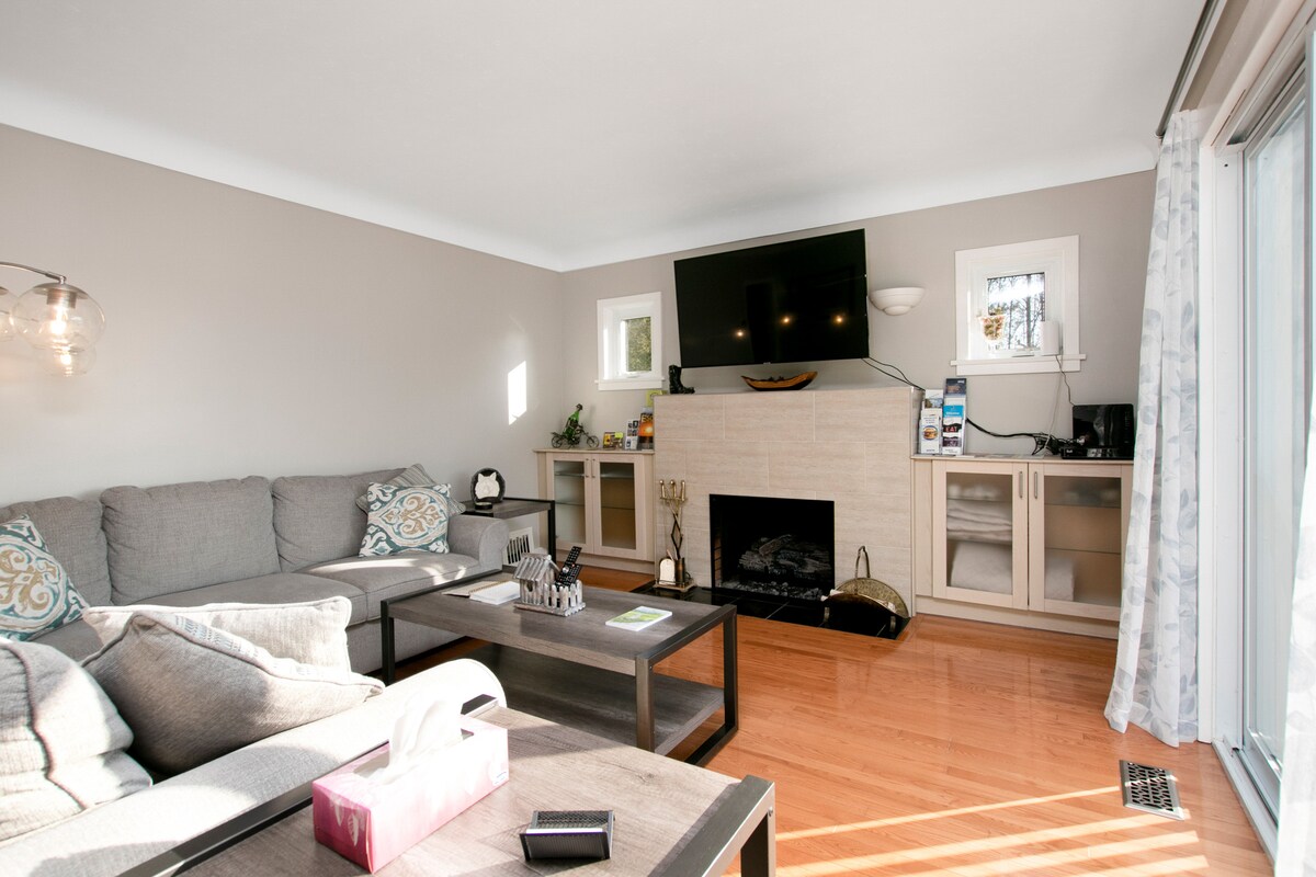 Siyakwamukela ku-Sunny Side Up, i-suite esanda kulungiswa, engu-2 bdrm, enefenisha ephelele enkabeni ye-Wiarton. Uhambo olufushane lokuya e-Bluewater Park olusogwini lwase-Georgia Bay. Lapho uzothola khona ibhishi, i-splash pad, indawo yokubhukuda, indawo yokudlala, indawo yokudlala, indawo yepikiniki, indawo yokudlela yase-Dockide, kanye nomzila we-Bruce. Kuhlanganisa I-WIFI yamahhala, i-A/C ephathekayo, i-smart tv ene-Netflix ne-Disney+, amalineni ahlanzekile, amathawula ahlanzekile, ikhishi elinakho konke, uvulandi wakho wangasese one-BBQ netafula lomlilo, indawo yokupaka yamahhala.