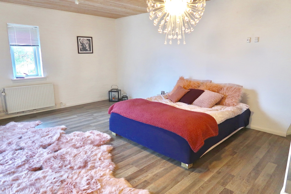 Letha wonke umndeni kuleli khaya elithokomele elinendawo enkulu. Ingadi inomgodi womlilo, izinkukhu nengadi yasekhishini. Zizwe ukhululekile ukudla engadini futhi uthathe amaqanda amasha ezinkukhu:) Imizuzu engu-5 ngemoto eya ezitolo. Imizuzu engu-20 ngemoto eya e-Boxen. Imizuzu engu-45 ngemoto eya e-Legoland. Imizuzu engu-50 ngemoto eya e-Aarhus. Amalineni namathawula ombhede afakiwe. Isidlo sasekuseni singahlelwa.