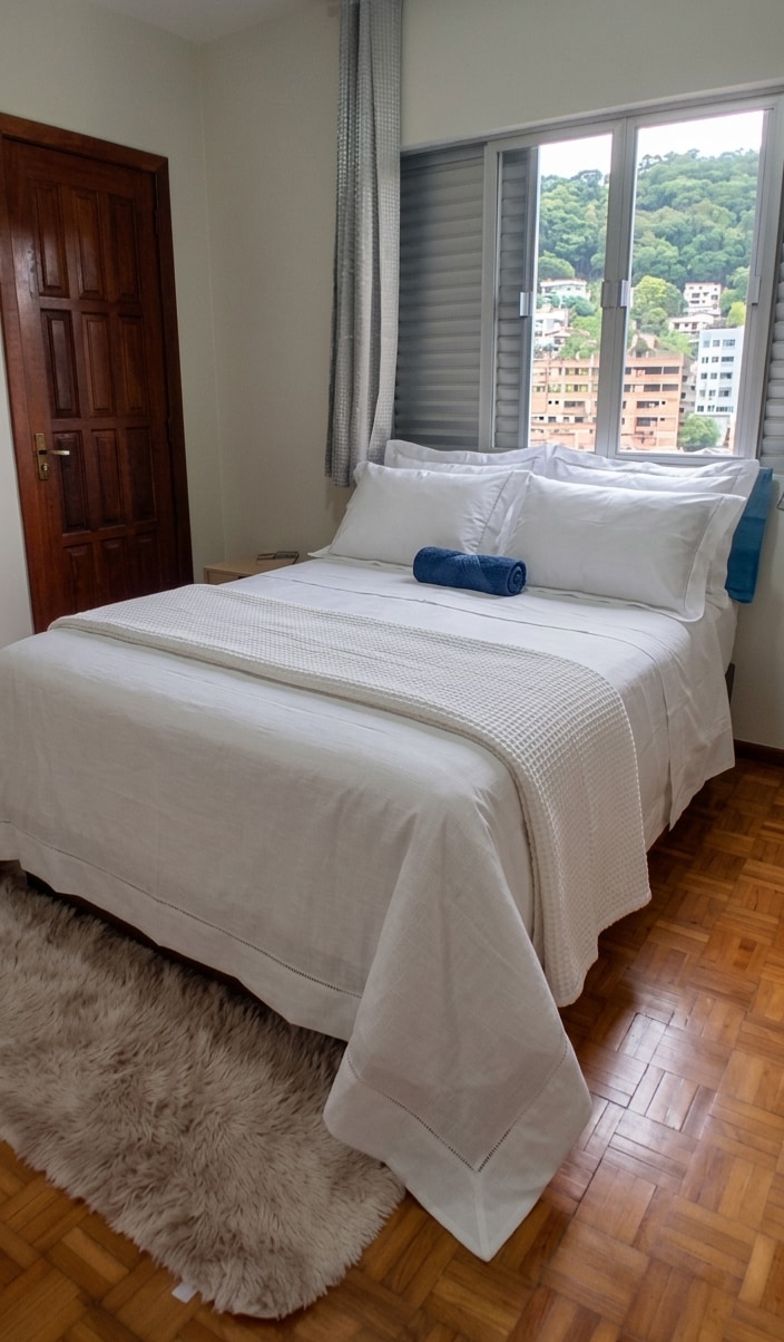 Ifulethi 504. Lesimanje, lithokomele futhi lihlotshiswe ngokugcwele. Kuhlotshiswe ngobuhle nokunethezeka ukuze ukuhlala kwakho kuphothulwe! Ine-balcony ye-gourmet ebheke imvelo! Indawo ethulile nethulile! Indawo enhle kakhulu... amamitha angu-60 ukusuka egumbini lokukhiya. I-WiFi yamahhala ne-Smart Tv. Isikhala segalaji sangasese esiyi-1 samahhala. Amakamelo okulala negumbi lokuphumula/ikhishi line-air conditioning. AmaWines atholakalayo ukuze asetshenziswe futhi anenani elincishisiwe!