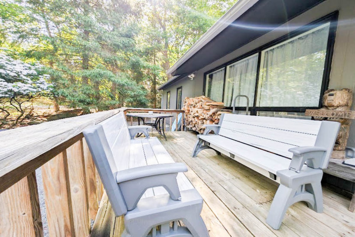 Indlu eyakhiwe ngamapulangwe enokuthula ye-Pocono eduze ne-JimThorpe engokomlando