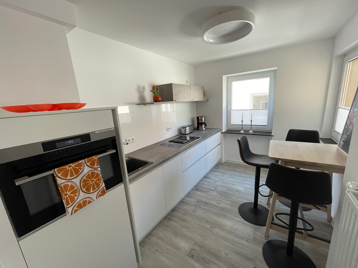 Siyakwamukela ku-City Suite yakho enhle enkabeni ye-Hildesheim! Ku-95 sqm, uzothola amakamelo amabili okulala athulile anemibhede emikhulu ethokomele, ikhishi elinakho konke elinendawo yokudlela, nomshini we-Nespresso ukuze uqale usuku lwakho kahle. Idizayini yesimanje nokwakheka okuhlakaniphile kuyenza ilungele imindeni, abangane, noma abantu abahamba ngebhizinisi. Kuthule kodwa kuphakathi nendawo – kune-WiFi enejubane eliphezulu nendawo yokupaka ephrayivethi.