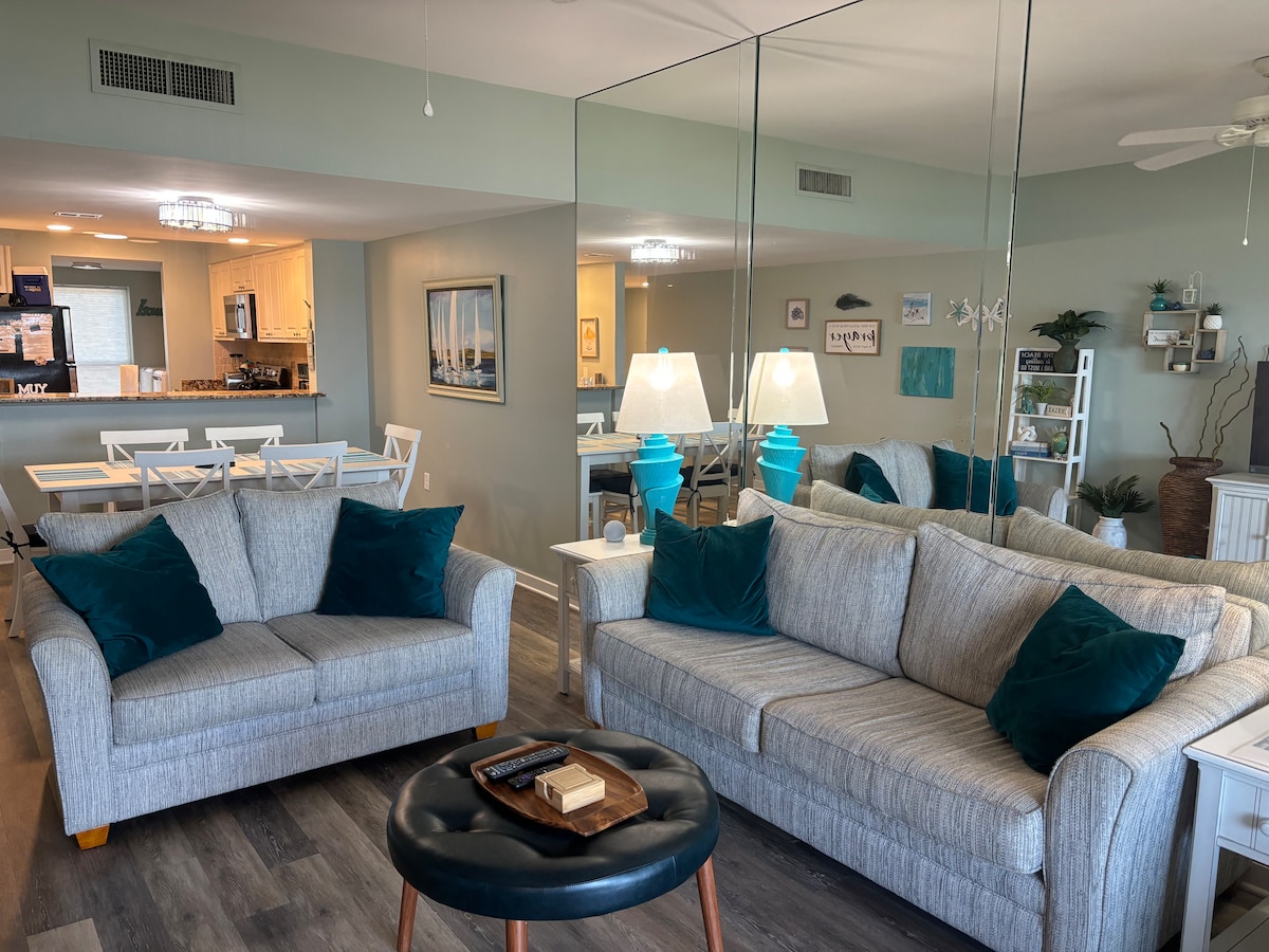 I-2 Bedroom Oceanfront Condo enhle ilungiswe ngokuphelele ngo-2022 ngokuthuthukiswa okuningi okufana nalokhu: * Kusandakudwetshwa nazo zonke izindawo zaphansi ezintsha kuyo yonke indawo *I-Samsung Smart QLED TV entsha engamasentimitha angu-55 egumbini lokuphumula *I-Samsung Smart QLED TV entsha engamasentimitha angu-43 kuwo womabili amakamelo okulala * Isiqandisi esisha se-Samsung French Door *Ama-Keurig amasha *Ama-thermostat amasha e-Nest * Izinto ezintsha zombhede nemicamelo ka-Tommy Bahama *Amafeni amasha kasilingi anezibani ze-LED * Izindlu zokugezela ezibuyekeziwe * Izibani ze-LED kuyo yonke indawo * Izinto ezintsha ze-closet *Izibambo zeminyango namahenga amasha * Iyunithi Engabhemi