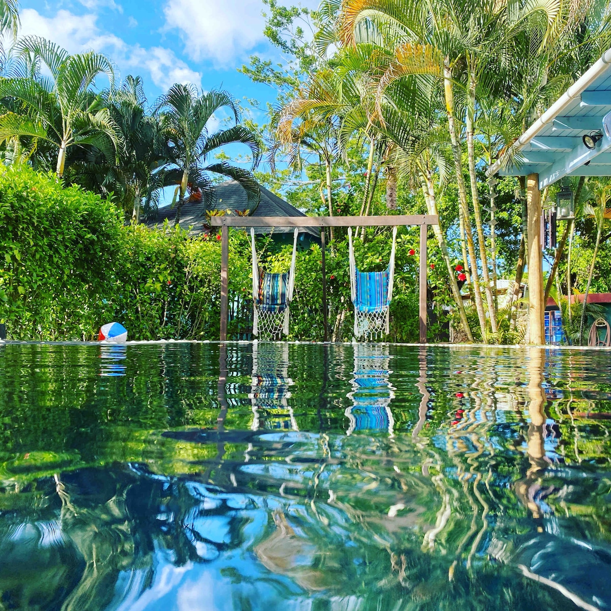 I-bungalow/istudiyo sesitayela sase-Caribbean esilungiswe ngokugcwele engadini enkulu, ejabulisayo yasezindaweni ezishisayo egcwele izihlahla zesundu, izithelo zasezindaweni ezishisayo nezitshalo zamahlathi emvula. Jabulela ingadi, phumula, uprakthize i-yoga noma ukhethe izithelo. Abathandi bemvelo bazoyithanda le ndawo! Imizuzu embalwa kuphela uma ushayela usuka enkabeni yedolobha nasebhishi, kodwa nokho ingaphakathi kwenkathi enokuthula, kude nezixuku nabantu abaningi. Amabhishi aseduze ePlaya Bonita naseCoson ngokuvamile afakwa ohlwini lwalawo amahle kunawo wonke eCaribbean! Umzuzu owodwa ukusuka lapho behla khona abagibeli ebhasini.