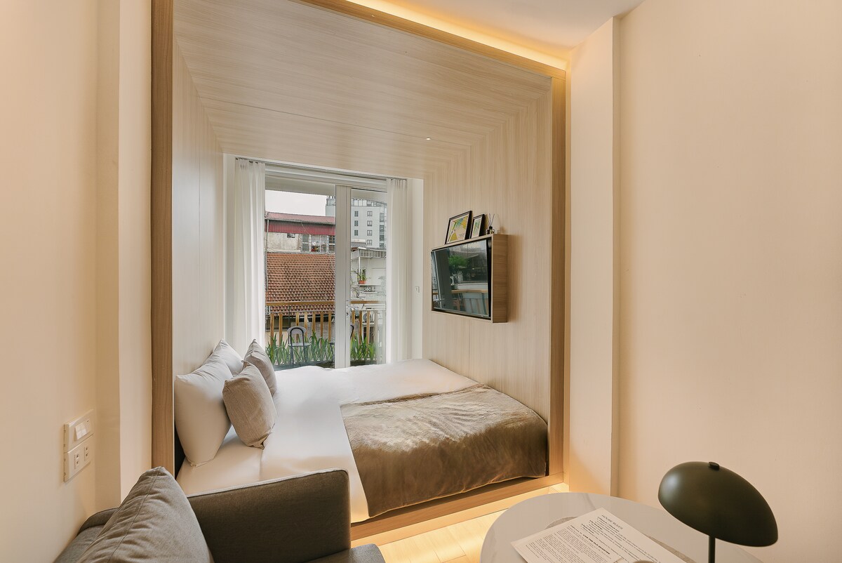 Iqhele e-French Quarter yase-Hanoi, leli fulethielingu-82m ² linikeza inhlanganisela enhle yotshani nomklamo omncane. Igqugquzelwe ubuhle base-Japan, indawo igeleza kancane isuka ekamelweni iya ekamelweni, igcwele ukukhanya kwemvelo, ukwakheka okuthambile, nokuzola. Uvulande ovulekile onezitshalo ezivundile umema ekuseni kancane nakusihlwa okunokuthula. Yonke imininingwane inenhloso — indawo yokuvakasha ethulile edolobheni.