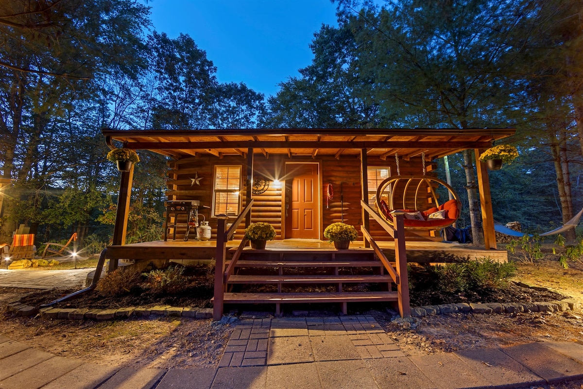 Indlu eyakhiwe ngamapulangwe eyimfihlo eduze nezindawo ezithandwayo ze-Hocking Hills. Izindawo ezinhle ezisodongeni lwethu olukhulu lwamafasitela. Amathani emidlalo yebhodi nama-dvd. Amahlathi amahle nama-ravines. Phumula ngaphandle ku-hammock yethu noma ngasemgodini womlilo. Ichibi lomphakathi eligcwele ukubhukuda, ukubamba nokukhulula izikebhe ezingekho emotweni emizuzwini embalwa ukusuka endlini eyakhiwe ngamapulangwe! Kulungele ubusuku obuthokomele ngaphakathi ngasemlilweni noma njengesizinda sekhaya sokuhlola. Igquma elikhulu elingugrabile emnyango we-4WD edingekayo enesimo sezulu esibi kakhulu (iqhwa noma iqhwa).