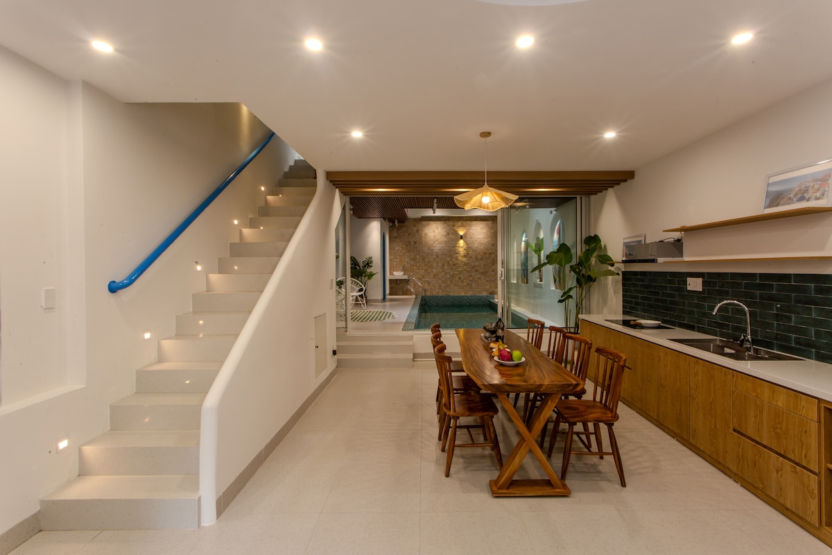 🎁 A newly built villa just 3 minutes’ walk to both Cua Dai Beach and Thu Bon River, offering a rare blend of privacy, wellness, and coastal charm. Enjoy a private pool, beach yoga, and walkable access to local restaurants and spas. With 3 serene bedrooms (2 king beds + 2 singles), it comfortably hosts 6 adults + 2 kids (under 6) — perfect for families seeking space, relaxation, and meaningful connection in a refined, tranquil setting.