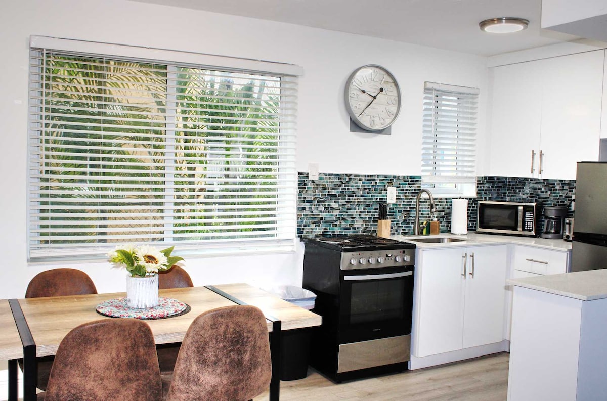 Balekela kuleli khaya elilungele umndeni elise-Fort Lauderdale. Imizuzu engu-10 ukusuka esikhumulweni sezindiza namamayela angu-7 ukusuka ebhishi, le ndlu enesitayela inikeza inhlanganisela ekahle kakhulu yokunethezeka nokunethezeka. Ngaphakathi, jabulela imibala emihle, eyamukelayo enezindawo zokuhlala ezivulekile nengaphakathi elikhangayo. Phuma uye egcekeni elingemuva elihle elinendawo yokubhukuda efudumele ephrayivethi, indawo yokudlela yangaphandle yomndeni, ngisho nomgodi wommbila ngenkathi ulinde izinja zakho ezishisayo endaweni yokosa! Ipharadesi lakho lilindile!
