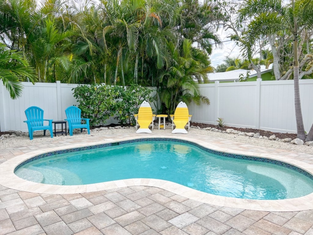 Charming Breezy Harbor sits in a quaint, exclusive corner of AMI and boasts a private heated pool and ample parking for 2 vehicles and even a boat: -We typically have shorter stays available, just ask! -If you don't have a single 50Lb pet, please discuss it with us -One of the twin boutique MyAnnaMariaStay homes, look us up! You'll love the luxury mid-century feel, lush yard, and a 6-min walk to the beach, Publix or the trolley stop. AMI was voted a top 50 vacation spot in the world in 2024