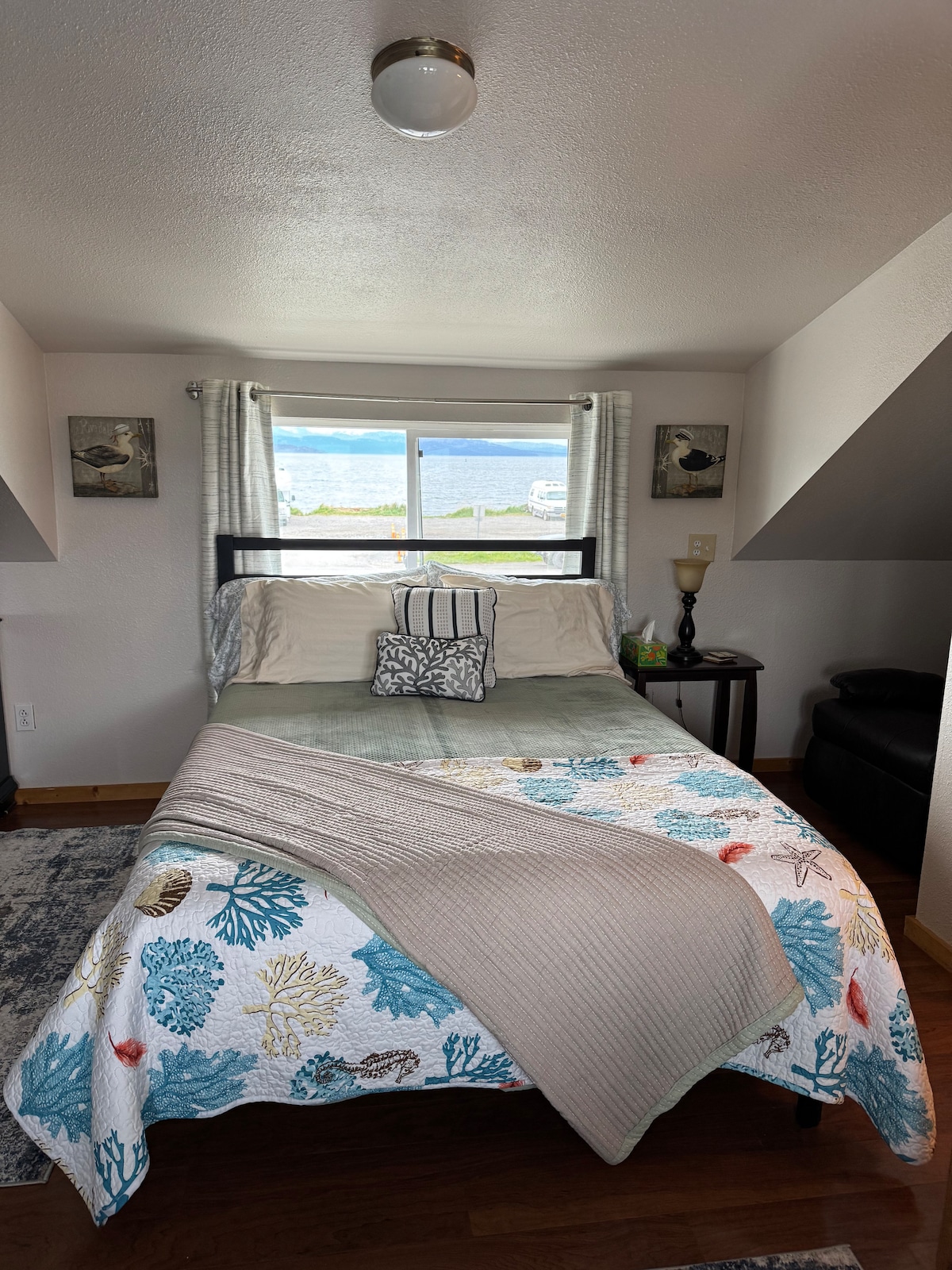 Le ndawo ekhethekile iseduze nakho konke, okwenza kube lula ukuhlela ukuvakasha kwakho e-Homer! Phezulu, i-studio style suite enombhede omkhulu nekhishi elincane. Ikhishi elincane lihlanganisa isitofu phezulu, i-microwave, ifriji elincane nomshini wokwenza ikhofi we-keurig. I-Suite isendaweni ephakeme ku-Homer spit. Eduze nezindawo zokudlela ezimangalisayo, izitolo kanye ne-Salty Dawg edumile. Itholakala ngasendleleni yetheku ukuze uqhele ngemizuzu ukusuka esikebheni sakho sokuqasha noma uhamba ngezinyawo ebhishi! Iyunithi ephezulu!
