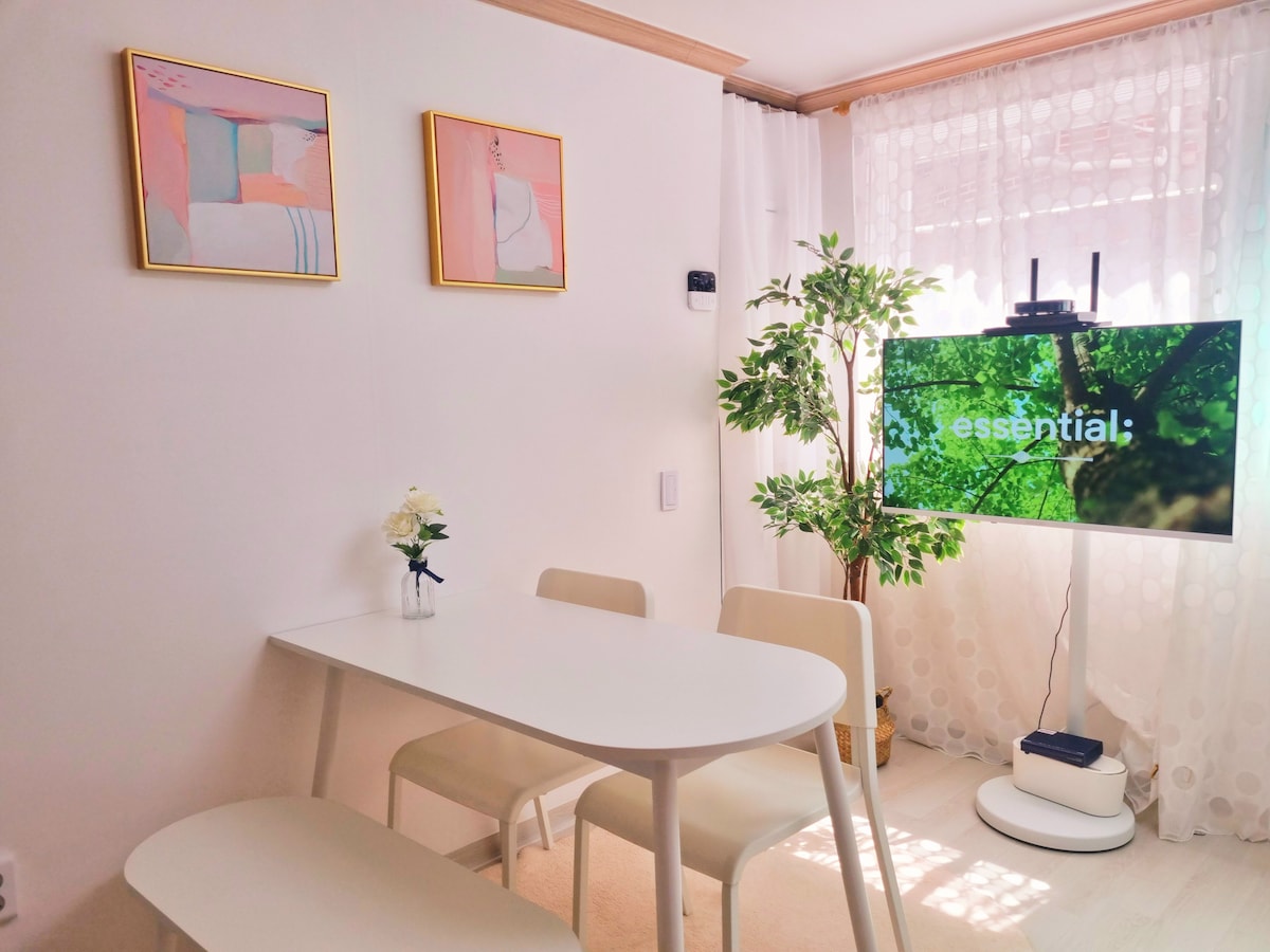 Usuku oluphuphayo njalo ezinsukwini ezingu-365! Sikumema ku-Tiger House esenkabeni ye-Seoul. ▶ Itafula Lokudlela Labantu Abangu-6 ▶ Ukwamukelwa Kwamahora angu-24 ▶ Yonke imibhede usayizi we-Queen ▶ Yonke imibhede yamaphedi kagesi ▶ I-inthanethi (i-Wi-Fi enejubane eliphezulu), i-Netflix (iyatholakala nge-akhawunti yomuntu siqu) Ithangi lamanzi ashisayo ▶ elisha (elinamanzi ashisayo amahora angu-24) Ukupaka ▶ okukhokhelwayo kuyatholakala esakhiweni ▶ Amakhethini acinyiwe ▶ Amakheshi amaningi asheshayo ▶ Kunikezwe amathawula amahle asehhotela ▶ ishawa nezindlu zangasese zomuntu ngamunye - Umshini wokuwasha (ngomshini wokomisa) -Iphansi elishisayo x - Kunikezwe ama-heater angu-2 (afudumele) - i-air conditioner - I-Smart TV - Kunikezwe umshini wokomisa izinwele ongu-2 (x2) - I-vacuum cleaner engenantambo - Ibhodwe lekhofi - I-micro wave - Umshini wokufudumeza ★ Akubhenywa egumbini (ama-e-cigarette x) Igumbi lokukhiya elikhokhelwayo eliseduze negumbi livuliwe amahora ★ angu-24 ! Ixhunywe ngokuqondile Esiteshini sase-HongDae Shesha ukubhukha!