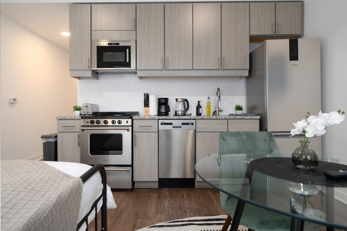 Siyakwamukela endaweni yakho yokuhlala yesimanje enama-2BR/2BA — eyenzelwe ukunethezeka nesitayela. Phumula egumbini lokuphumula elithokomele eline-TV engu-75” nendawo yokubasa, noma uphumule egunjini elikhulu elinobukhulu eline-TV engu-65” nendawo yokugezela eyimfihlo. Jabulela ikhishi elinakho konke okudingekayo elinefriji elingakwesokudla noma kwesobunxele, umshini wokuwasha nowokomisa, i-WiFi enejubane elikhulu, nendawo ehlotshiswe kahle yonke. Ilungele ochwepheshe abahambayo, imindeni, noma iholide langempelasonto.