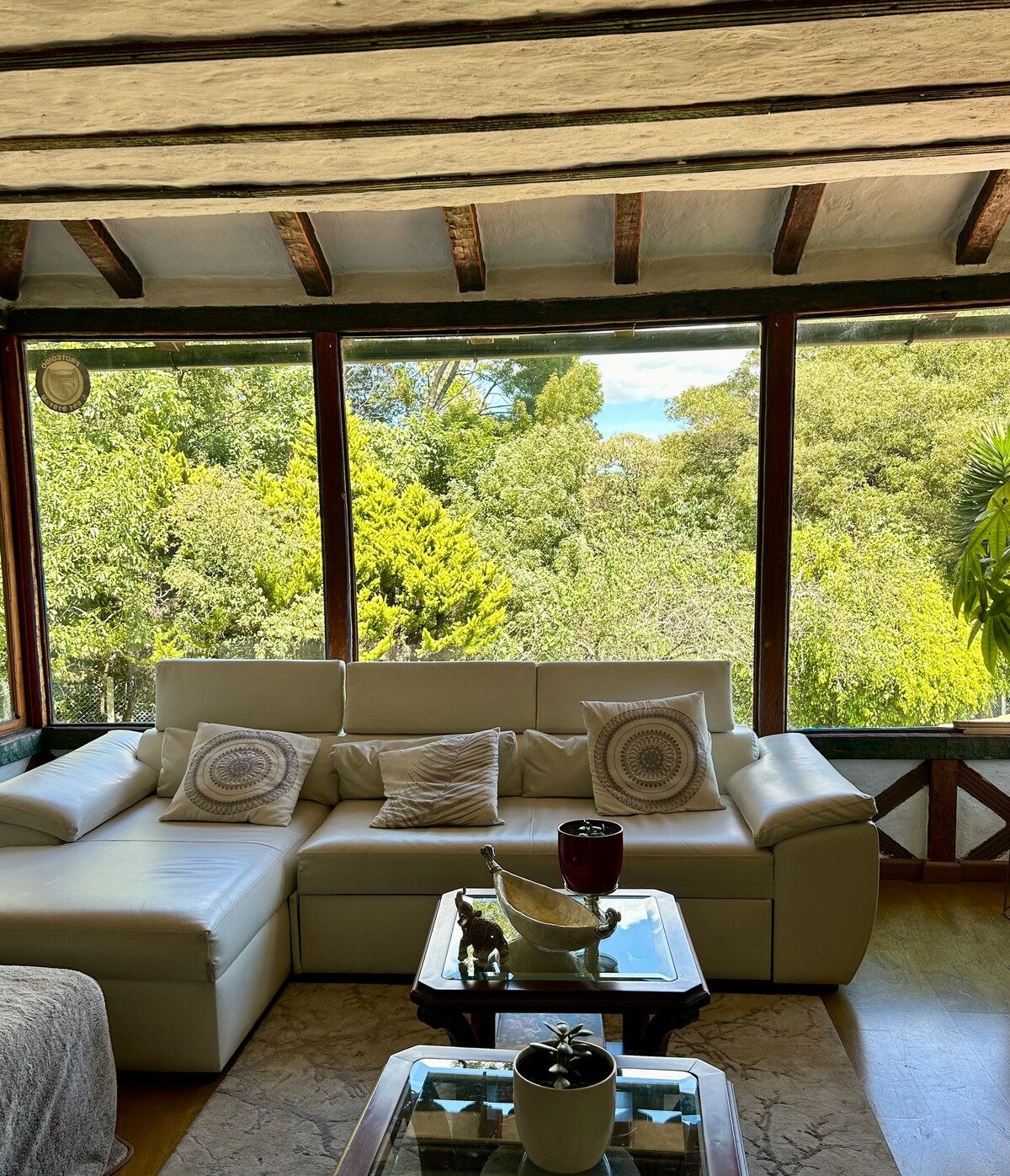 La Fonda para invitados es una cálida, acogedora y confortable cabaña estilo cafetero. La Chimenea y los detalles de la decoración le dan un ambiente romántico. Es un sitio muy tranquilo, ideal para desconectarse del ruido de la ciudad y conectarse con lo natural, proporcionando paz y bienestar. Esta rodeada de vegetación nativa, jardines de flores, arboles frutales y huerta casera. Una hermosa vista al Valle de Sopo y al imponente Cerro del Parque El Pionono.