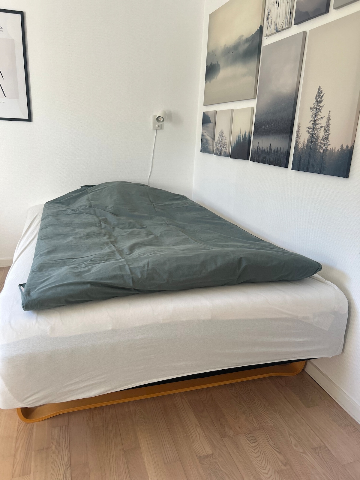 I-50 m2 ithokomele kakhulu futhi iyifulethi elihle edolobheni lase-Roskilde ngokubuka umgwaqo wabahamba ngezinyawo, izindawo zokudlela, amathilomu, isakhiwo se-Unesco Roskilde Cathedral futhi eduze netheku. Iflethi linekhishi elincane elinakho konke, uhhavini ne-microwawe, ikamelo lokugeza nomshini wokuwasha nekamelo elincane elinombhede womuntu oyedwa nekhabethe elikhulu. Egumbini lokuphumula kunesofa ethokomele efanele abantu ababili, ithelevishini netafula. Iflethi lisanda kulungiswa.