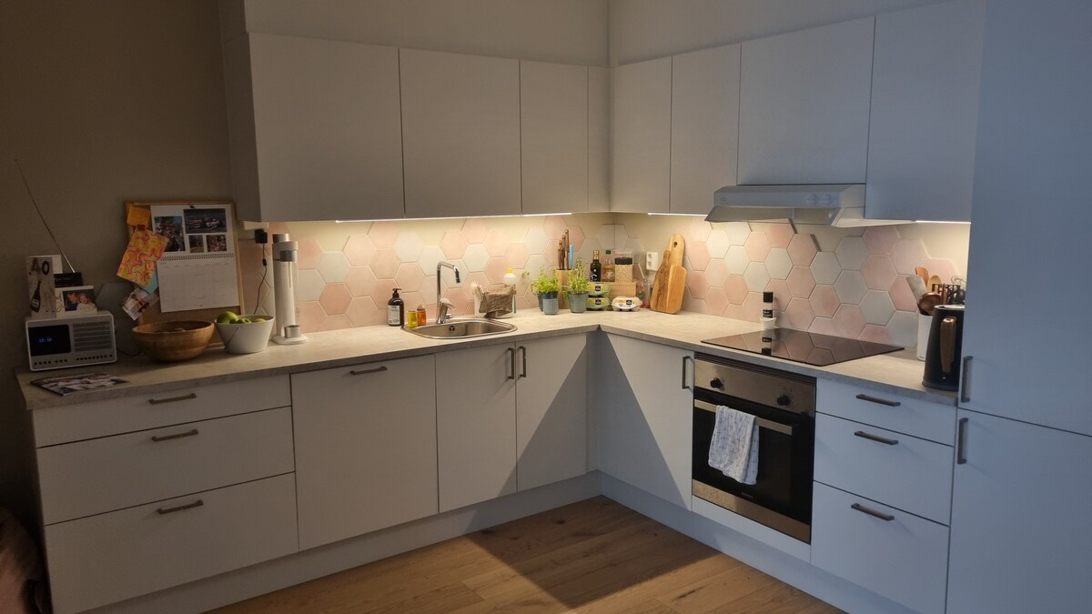 Siyakwamukela efulethini elisha sha elinekamelo lokulala elihlukile, ikhishi elinakho konke, nendawo yokuhlala ethokomele. Indawo yokupaka yamahhala, imizuzu engu-5 ukuya ebhasini elithatha imizuzu engu-25 ukuya e-Oslo. Imizuzu engu-7 ukuya ebhishi. Phumela ngaphandle uye kuvulande wakho ozimele futhi ujabulele indawo ezungezile enokuthula. Le fulethi inikeza okungcono kakhulu kwemvelo nokuphila kwasedolobheni. I-Wi-Fi esheshayo, i-TV ye-Frame, umshini wokuwasha izitsha, umshini wokuwasha, ukungena okusheshayo, nazo zonke izinto ezibalulekile zifakiwe ukuze ukuhlala kwakho kungabi nazinkinga.
