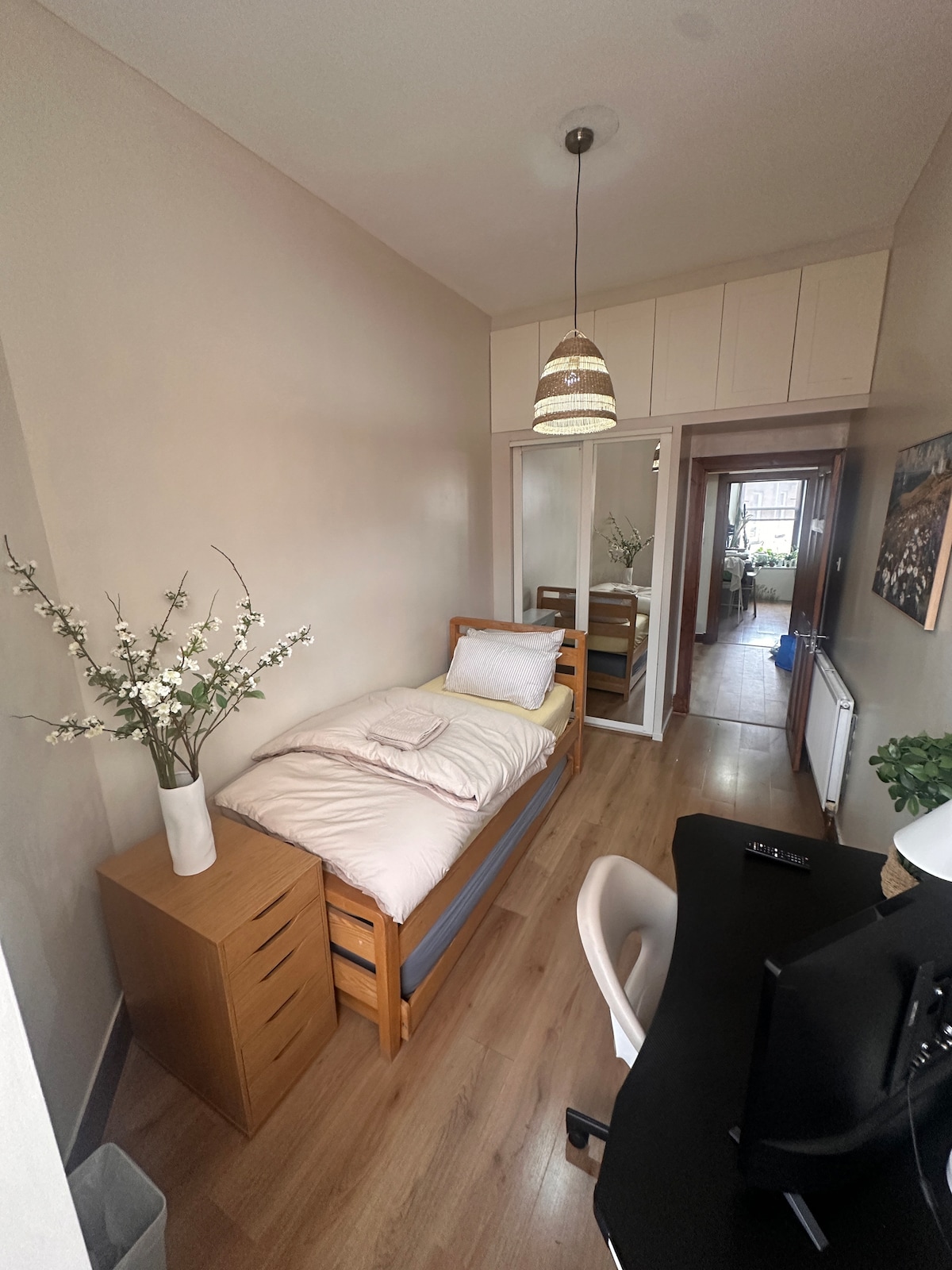 Yima efasiteleni le-bay bese ubheka ukubukwa okumangalisayo ngaphesheya kwamagquma. I-studio sinophahla oluphakeme oluphindwe kabili nezinga lokulala elisesitayeleni le-mezzanine. Inezici zasekuqaleni, ezihlanganisa ukugqoka kwe-cornicing kanye nendawo yomlilo yokuhlobisa. Le ndawo iseduze ne-45m squared enophahla oluphindwe kabili. I-cornicing ihlanzekile futhi iyasekuqaleni, ungayibheka amahora amaningi! Iwindi elikhulu kakhulu le-bay linikeza ukubukwa okumangalisayo emagqumeni, futhi ebusuku idolobha elingezansi likhanyisa njengesihlahla sikaKhisimusi. Izivalo ezinkulu zokhuni kuzo zombili izinhlangothi zefasitela ezigoqiwe ukuze zikunikeze ubumfihlo obudingayo kusihlwa. Umbhede we-mezzanine ukhululeke kakhulu futhi kunendawo eyanele yokugcina izingubo nama-suitcases ku-wardrobe enkulu njengoba ungena ngakwesokudla. Endaweni engezansi ngaphakathi kwe-wardrobe uzothola i-ayina, umshini wokomisa izinwele nezinwele. Sinikeza i-shampoo nejeli yeshawa egumbini lokugezela elinegumbi lokugezela elihle, ishawa nokushisisa ngaphansi kwaphansi. Uma ufuna ukujabulisa kusihlwa ungakhanyisa i-log burner. Ikhishi linomshini wokuwasha owamukelekile ukuthi uwusebenzise futhi kufanele uthole itiye eliningi, ikhofi, ama-cereal namabhisikidi nalapho. Ungangena kuyo yonke indlu Njengoba ngihlala e-London indawo yami iphethwe umakhelwane wami nomsizi we-Pip! I-studio sise-Woodlands Terrace, ngokuqinisekile umgwaqo omangalisa kakhulu e-Glasgow. Uhlala ngokuqondile e-Kelvingrove Park, umfula u-Kelvin ngasezinyaweni zepaki ulungele ukugijima nokuhamba ngezinyawo. I-Botanic Gardens ihamba ibanga elifushane eceleni komfula, kanye ne-Kelvingrove Museum, i-Huntarian Museums, i-Centre for Contemporary Art kanye neMnyuziyamu yezokuthutha isematheni. Iflethi lingaphansi kwemizuzu engu-10 uhamba ngezinyawo usuka ezindaweni zokudlela ezimangalisayo namabha omgwaqo wase-Argyle nase-Great Western Road. Ngeke ukhathazeke lapha! Into enhle mayelana nendlu ukuthi konke ongakufuna edolobheni kusemnyango wakho ngempela, kodwa nawe usondelene kakhulu nomhlaba ongaphansi komhlaba e-Kelvinbridge, kanye nesitimela esiphuma edolobheni e-Charing Cross. Indawo yokupaka izakhamuzi kuphela / Khokha ngoMsombuluko kuya ku-8am - 6pm kodwa mahhala kusihlwa nangezimpelasonto. Enye indawo yokupaka ingatholakala emigwaqweni eseduze phakathi neviki. Uma uthanda ukuphuma edolobheni i-Loch Lomond National Park iqhele ngemizuzu engu-30 ngemoto futhi i-Glen Coe emangalisa cishe amahora angu-2. Sicela uqaphele, ukungena nokuphuma akutholakali ngomhla ka-25 December nango-1 January.
