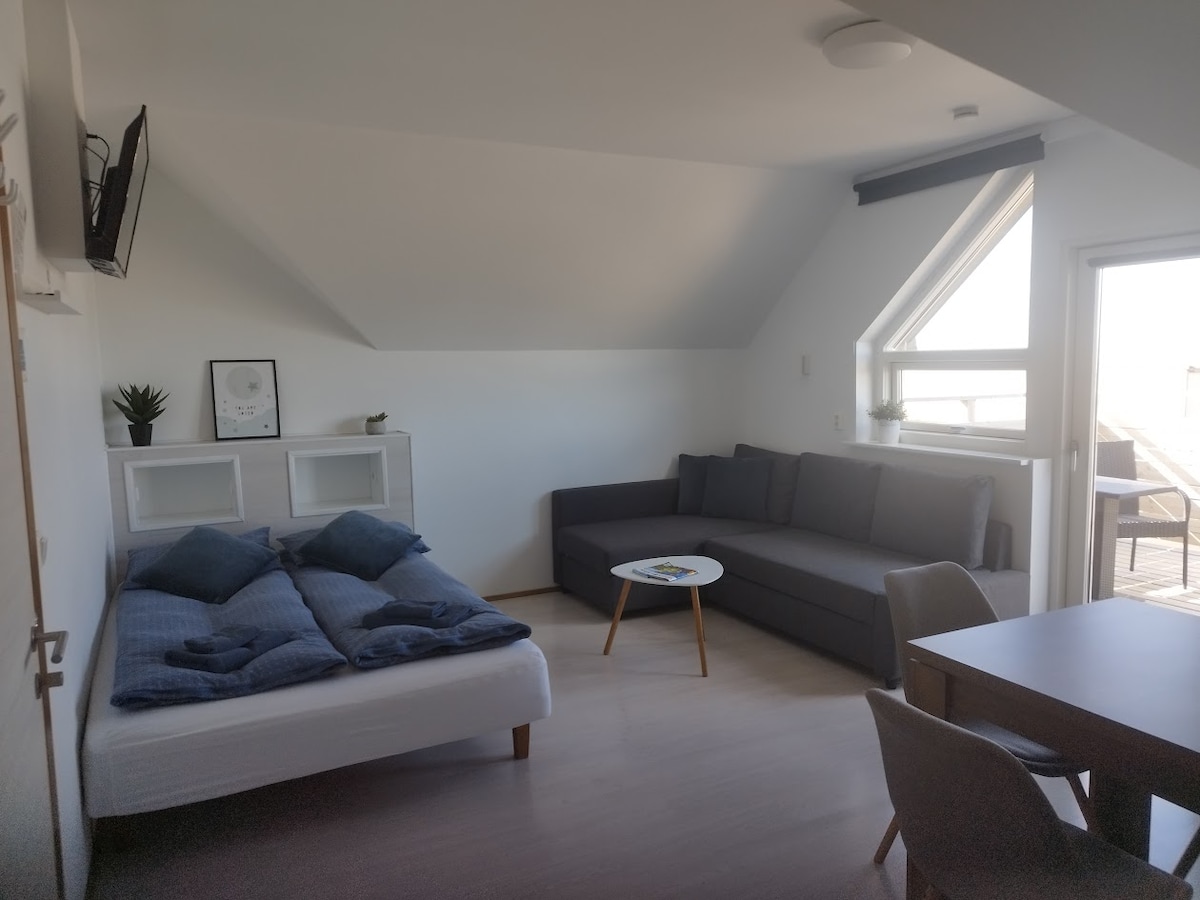 Ifulethi elihle elisanda kulungiswa elinendawo yokungena yangasese yabantu ababili endaweni enobungane emndenini. Amamitha-skwele angu-35 anombhede wosayizi we-queen (160x200cm), ikhishi elisha negumbi lokugezela elisha. Indlela esheshayo yokungena maphakathi nedolobha (imizuzu engu-15 yokushayela), ukufinyelela okulula emigwaqweni emikhulu nendawo enokuthula. Kukhona izimakethe ezinkulu ezingekude kakhulu nendawo yokubhukuda enamaqhugwane nama-sauna. Indawo yokuma ibhasi iqhele ngemizuzu engu-1. Eduze nemizila emihle kakhulu yemvelo enamachibi, imifula nezindawo ezivulekile.