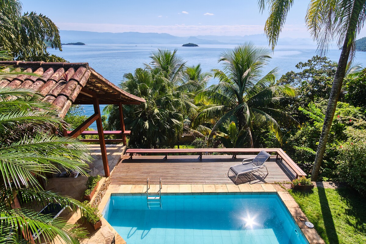 Indlu engasolwandle, enezilwane nezitshalo eziningi zasehlathini. Itholakala efulethini elingu-52.000m2 futhi inezindlu ezingu-8 kuphela. Yindawo ekhethekile kulabo abafuna ukuthula nobumfihlo. Okuwukuphela kwendlela yokuhamba, ngaphandle kwezikebhe, ihamba ngezinyawo, evumela ukuqwala izintaba ezinhle emizileni ezungeze isiqhingi. Ngifaka ilinki eneziphakamiso ezenzelwe wena mayelana ne-Paraty nezindawo ezizungezile ukuze ujabulele konke okunikezwa yisifunda https://www.airbnb.com/l/vGFgBtUs