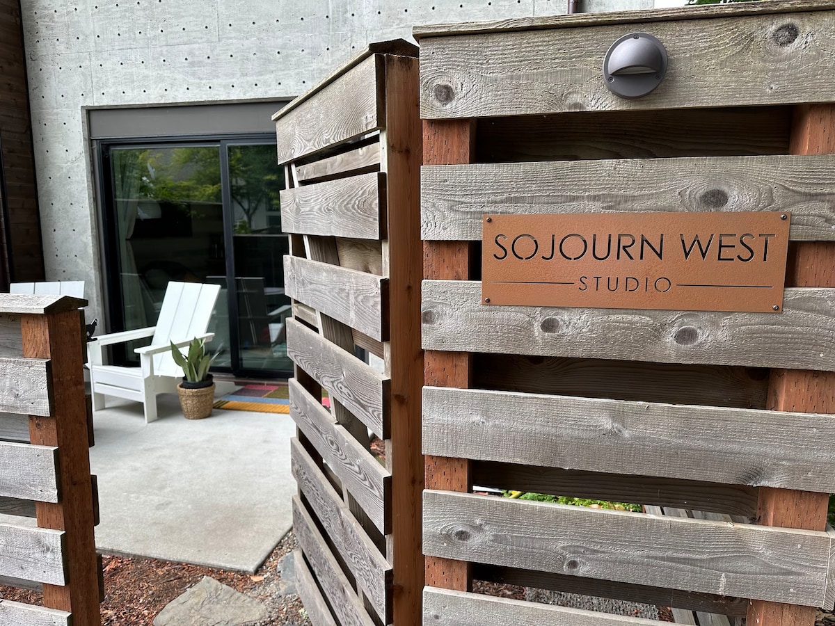 Ukubukwa kwengadi okugcwele, okukhanyayo futhi kwesimanje "indlu yezivakashi" imizuzu engu-5 ngaphandle komgwaqo omkhulu kanye nemizuzu engu-10 ukusuka esikebheni entshonalanga ye-Bremerton. Le ndawo iyunithi ezimele ehlukaniswe nendlu yethu eyinhloko eseceleni komgwaqo oyinhloko, eyakhiwe phakathi kwemisedari nama-firs eceleni kwe-Mud Bay exhumanisa ne-Puget Sound. Igumbi linombono ogcwele wezinga elingu-270 ezingadini nezihlahla, umbhede wosayizi we-queen murphy, ifriji, usinki, i-microwave, isitofu sezinkuni negumbi lokugezela, egcwele i-shower yemvula engaphandle engu-16".