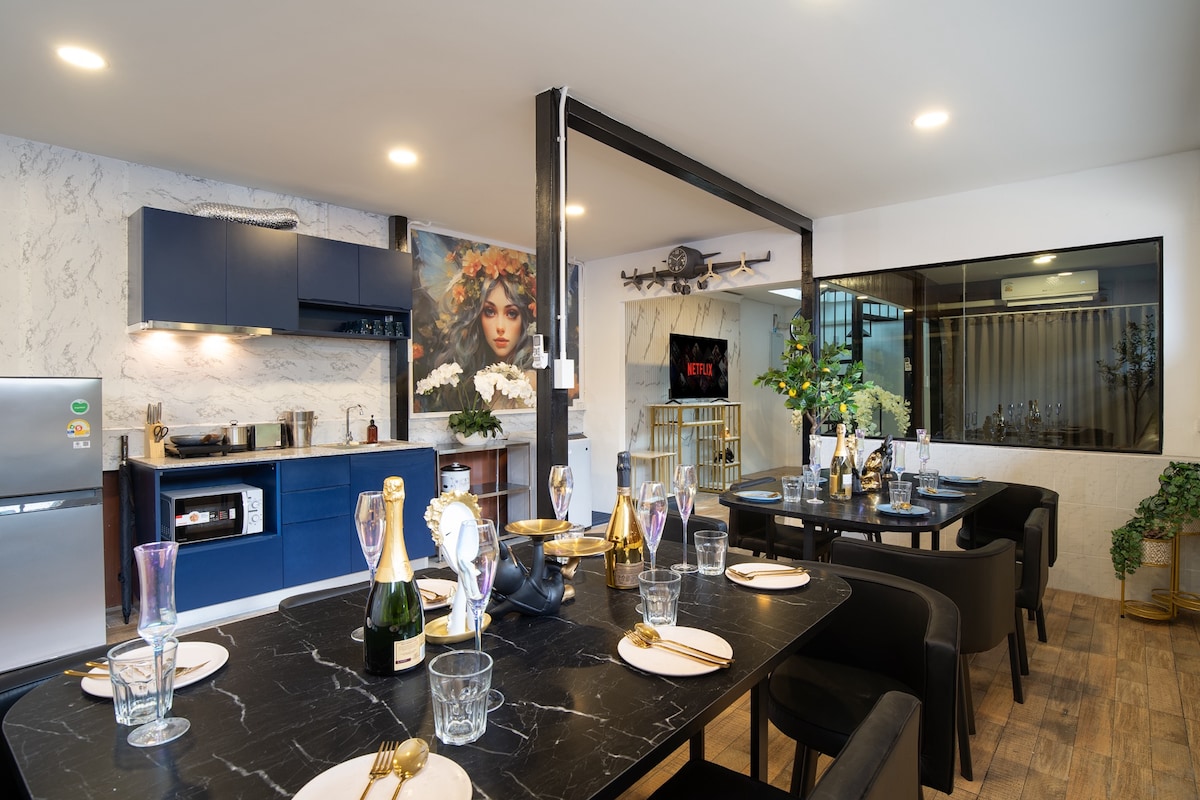 Uma le ndlu ingenazo izinsuku ozifunayo, ungabuka ezinye izindlu ngokuchofoza esithombeni sami sephrofayili ---- Indawo yethu yokuhlala iseduze ne-Rama 7 Bridge, indawo egcwele indawo ethokomele nethule.Itholakala egcekeni langasese edolobheni eliphithizelayo, indawo yethu yokuhlala inikeza amakamelo amabili namagumbi okugezela amabili, ane-air conditioning egumbini, okukuvumela ukuba uhlale upholile futhi uthokomele e-Bangkok. Igceke eliyisitayela sengadi endaweni yokuhlala lihle kakhulu futhi liyindawo enhle yokuthatha izithombe.Zungezwe abantu bangaphandle ngaphandle kwezivakashi zethu kwenza kuphephe kakhulu futhi kuthule.Imizuzu engu-8 uhamba uye esiteshini se-MRT bango, i-711 ivuliwe amahora angu-24 ngaphandle kwe-alley, okwenza ukuhamba kwakho nokuthenga kube lula kakhudlwana. Phuma ehlathini, kuqhele ngamamitha angaba ngu-800, kukhona nesikebhe sebhasi. Ungathatha isikebhe uye ezindaweni eziningi ezithandwayo, njenge-Ferris Wheel Night Market, i-Siam Paragon, njll, ukuze ukwazi ukujabulela enye indlela ehlukile yokuhamba.Kukhona namabhasi azungeze indawo ezungezile ongakhetha kuyo ngokuvumelana nendawo oya kuyo. Indawo yethu yokuhlala imayelana namakhilomitha angu-12 ukusuka e-Grand Palace, cishe imizuzu engu-20 ngetekisi, amakhilomitha angaphansi kuka-10 ukusuka e-Khaosan Road Bar Street, cishe imizuzu engu-20 ngetekisi, cishe amakhilomitha angu-10 ukusuka e-Erawan Buddha nase-Siam Paragon, okungekude, okuhlinzeka kalula kakhulu ohambweni lwakho. Ekhaya lethu, ungazizwa imfudumalo nokunethezeka kwekhaya ngenkathi ujabulela indawo ephithizelayo yedolobha nezimo zokuhamba ezikahle.Sibheke phambili ekukwamukeleni ukuze wenze ukuhlala kwakho kujabulise.