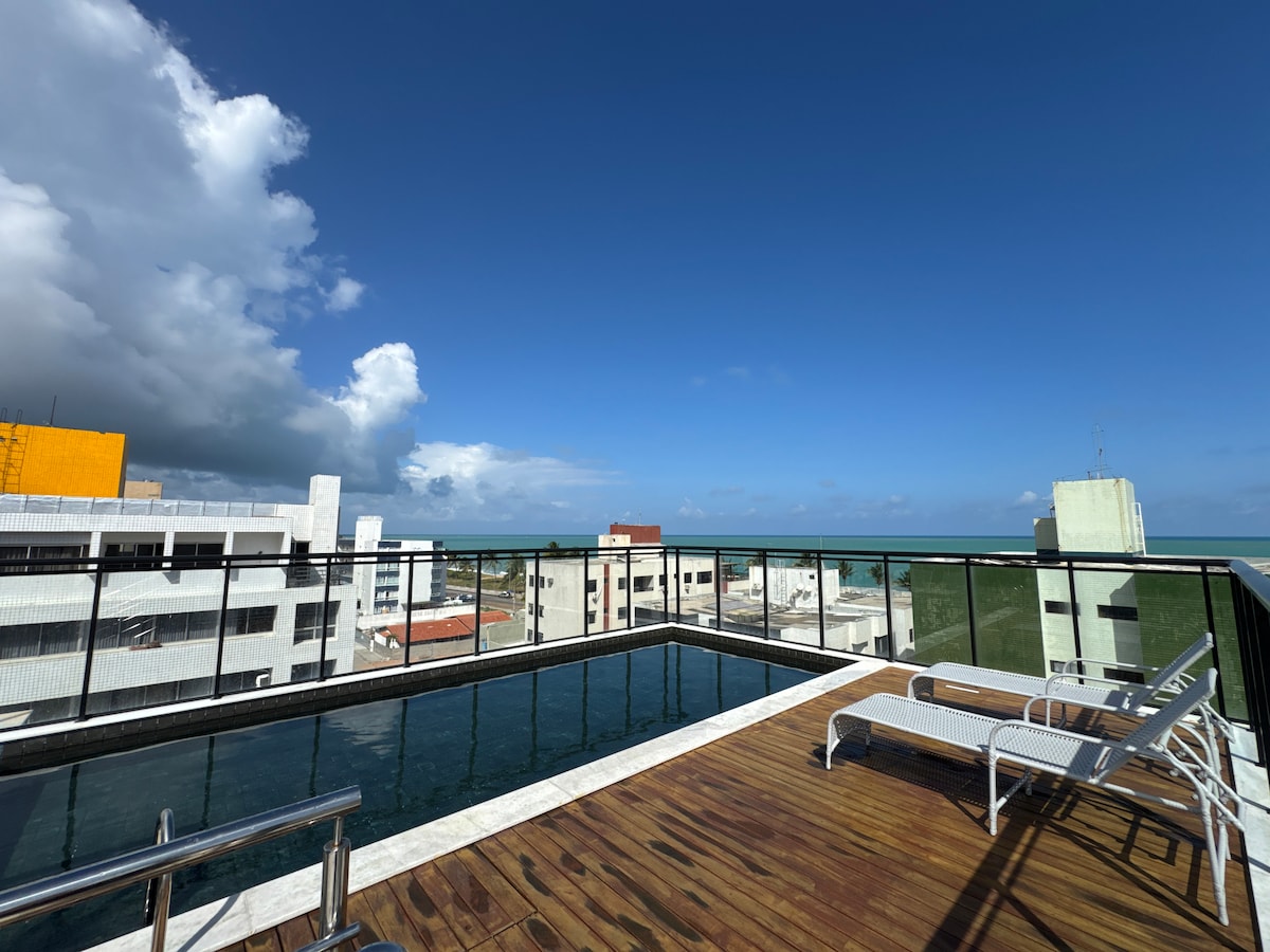 Ifulethi elisefulethini elimi e-Paraíso do Atlântico, elinama-pool okubhukuda omndeni, i-sauna, i-jacuzzi, indawo yokuzivocavoca njll e-Ponisiacal Ponta de Campina, i-João Pessoa. Ibhishi lithule futhi lihlanzekile ulwandle oluhlaza okwesibhakabhaka, lulungele usuku, futhi imizuzu embalwa uhamba ngemoto usuka ezindaweni eziningi ezikhangayo nezinhle zenhloko-dolobha. I-apê inamakamelo okulala amabili ane-air-conditioned ane-1 Queen Suite, i-balcony enkulu futhi enomoya onokubuka ulwandle, ukudla okuphelele kwaseMelika futhi iye yahlotshiswa ngothando ❤