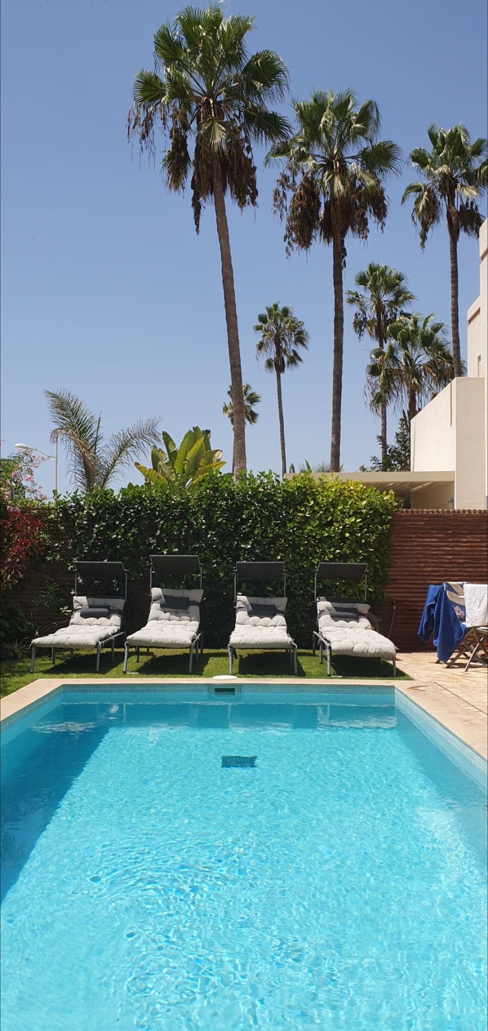 Siyakwamukela ekhaya lethu! Ifulethi lisendaweni yokuhlala kanokusho yase-Marina d 'Agadir, evikelekile, ifakwe amachibi angu-3, anezindawo eziningi eziluhlaza, izitolo, izindawo zokudlela kanye nebhishi elinesihlabathi elingamamitha angu-200, okwanele ukujabulisa wonke umndeni. Ifulethi lokubuka indawo yokubhukuda elingu-115m2 linezinto zonke, linefenisha enambithekayo, elinamakamelo amakhulu angu-2 (kuhlanganise nekamelo elikhulu), izindlu zokugezela ezingu-2, ikamelo lokuphumula (lilala abantu abangu-3) ekhishini elivulekile, amabhalkhoni angu-2 ne-loggia.