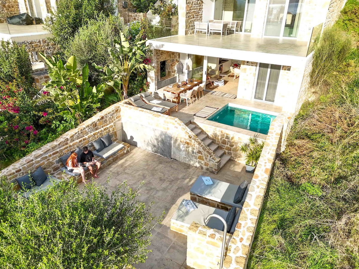 I-Gialova Hills Luxury Villa enendawo yokubhukuda eyimfihlo ebheke ulwandle