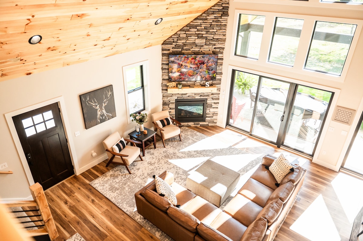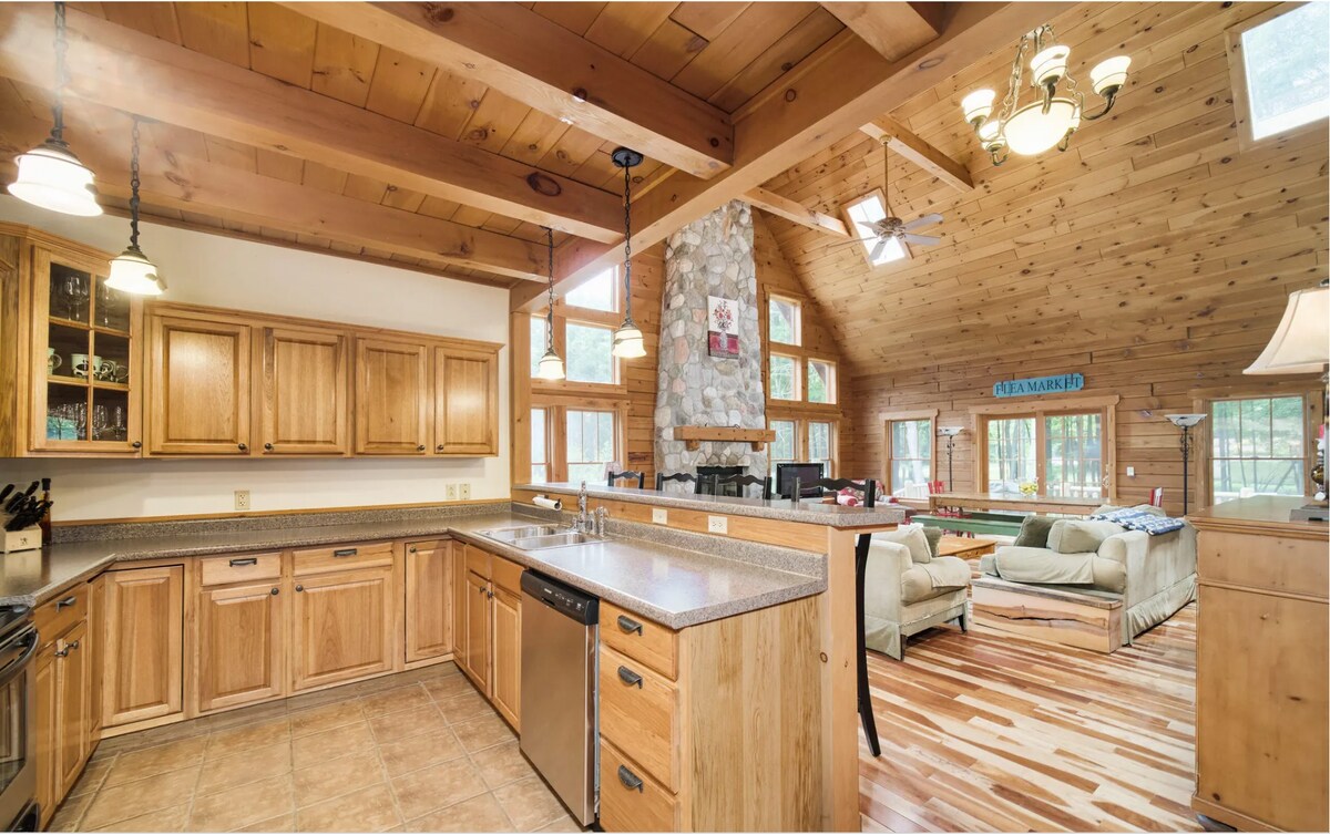 Siyakwamukela endlini eyakhiwe ngamapulangwe ethokomele etholakala enkabeni ye-Irons, MI. Indlu yethu elungiswe ngokuphelele inamagumbi okulala angu-4, amagumbi okugezela angu-2, igumbi lokuphumula elinendawo yokubasa negumbi lokudlala. Woza ujabulele amachibi ethu asendaweni kanye nokufinyelela ngokuqondile kuwo wonke amathrekhi! Ama-bha, ipaki, isiteshi segesi konke kuseduze. Igceke elikhulu nelingasese elinendawo yokubasa lenza ubusuku bakho nomndeni nabangane bube mnandi. Indawo yokushushuluza i-Caberfae imizuzu engu-25, idolobha lase-Manistee nekhasino imizuzu engu-30. Imizila eminingi yezimoto zeqhwa, ukuqashiswa okuseduze.