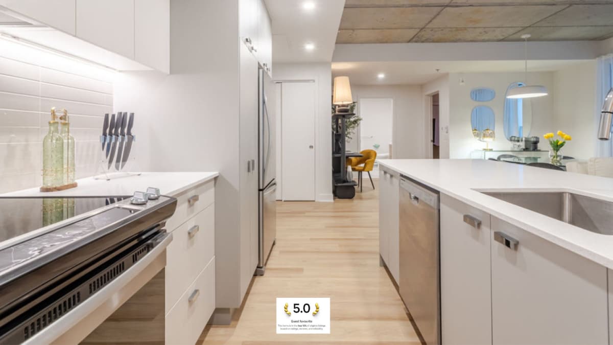 Superbe appartement 1200 pc (111 mc) neuf 2 chambres situé en bordure du fleuve St-Laurent à Montréal. Air climatisé WIFI, Netflix, laveuse-sécheuse, lave-vaisselle, condiments de base, savon à linge, full équipé, stationnement. Situé à moins 30 min. du centre-ville et des principales attractions de la ville de Montréal. À pied du parc naturel Pointe-Aux-Prairies, de la plage de l'est, face à la piste cyclable qui mène partout à Montréal. 5 min. des facilités et des autoroutes. CITQ 307518