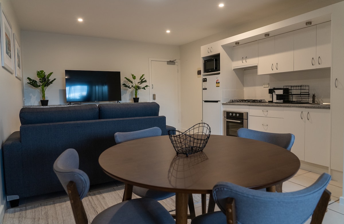 The former home of Tess Owens, the matriarch of the R J Owens grocery store family lived here above the food co-op after the founder RJ Owens died. I am told she religiously swept the foot path every morning before opening time and kept an eagle eye on everything. This contemporary super sized studio apartment has been remodelled to suit modern living in the 21st century, fridge, microwave, Nespresso, double shower, dining and lounge area. Access to shared roof top pool area.
