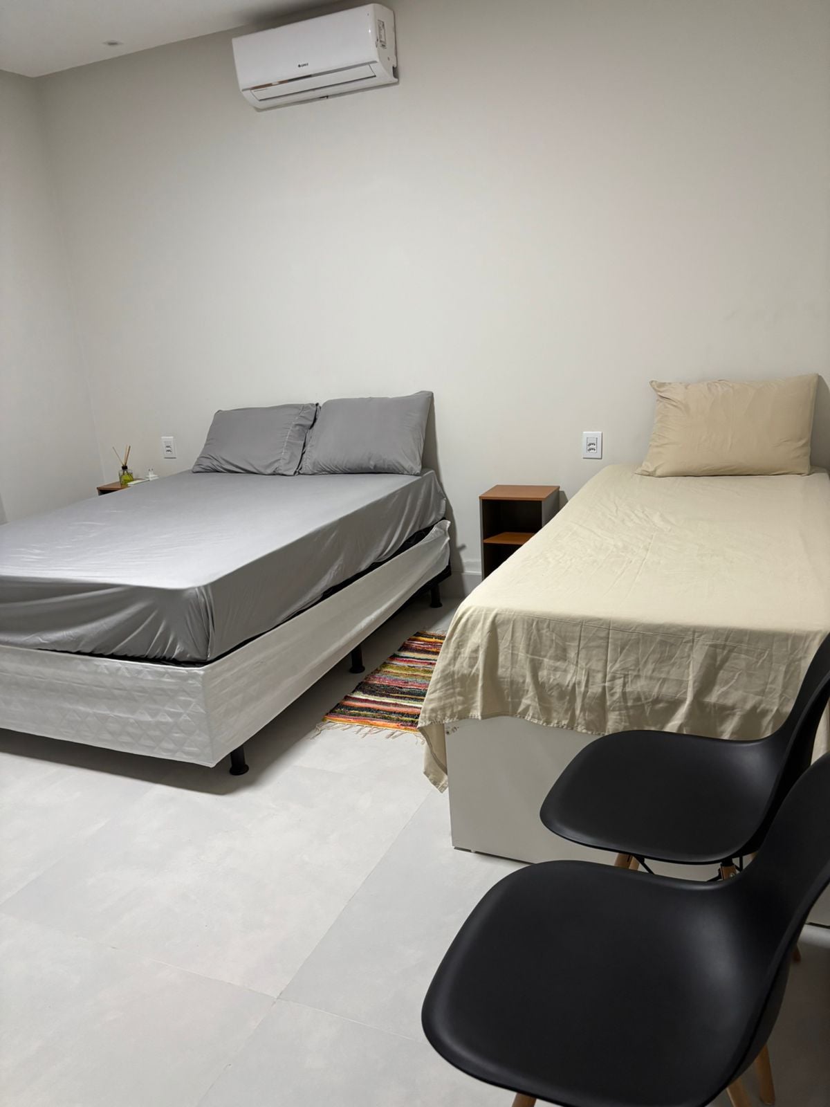 Ku-AP ungathola: • Igumbi lokuphumula elinosofa, i-smart TV ne-WiFi/Ihlanganiswe nekhishi; • Ikhishi elinakho konke elinezitsha nezinto zikagesi, ikhawunta yaseMelika enezitulo ezimbili; • Kuvulande kukhona itafula elinezihlalo ezine; • I-Lavandeira enosinki, ingubo ne-ayina; • Amagumbi okugezela angu-2; • Igumbi lokulala 1: umbhede omkhulu, i-closet, i-air conditioning negumbi lokugezela; • Igumbi lokulala 2: i-queen bed and foot fan; • Asinayo indawo yegalaji. Umgwaqo unekhamera futhi uthule kakhulu.