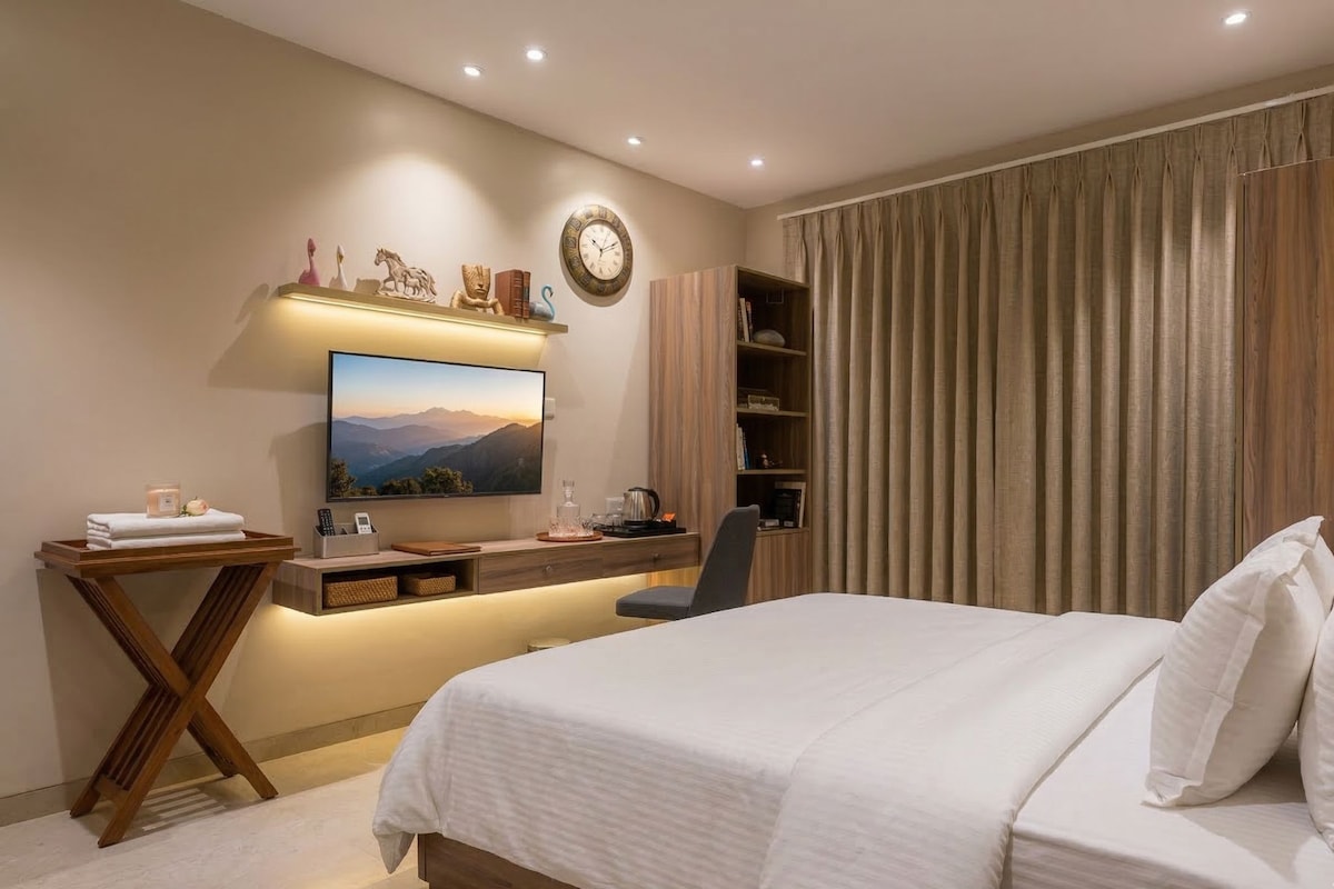 Swaranjali is a countryside hotel near Ajanta & Ellora Caves and Lonar Crater and so much more, ideal for exploring Maharashtra’s heritage sites. Set amidst open farmlands, it features art-house design, centrally air-conditioned rooms, King's Bar - a rooftop bar with a refined selection of beverages , Swara café - an all day cafe surrounded by greens and a multi-cuisine restaurant serving delicaices. Perfect for road-trip travelers on the Pune–Nagpur highway seeking a peaceful, comfortable base.