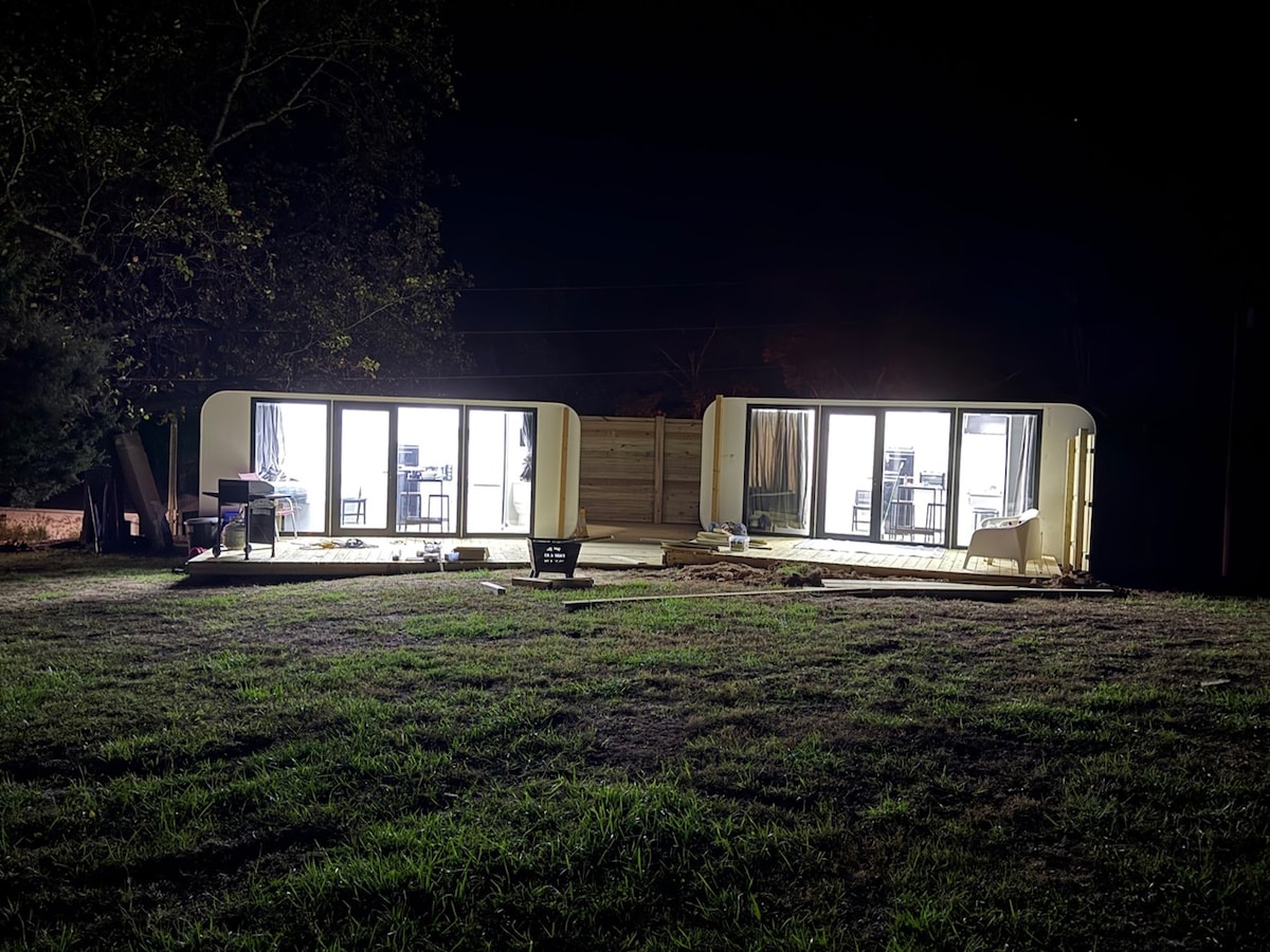 Cozy Twin Pods with Deck, Firepit & Lake Toys