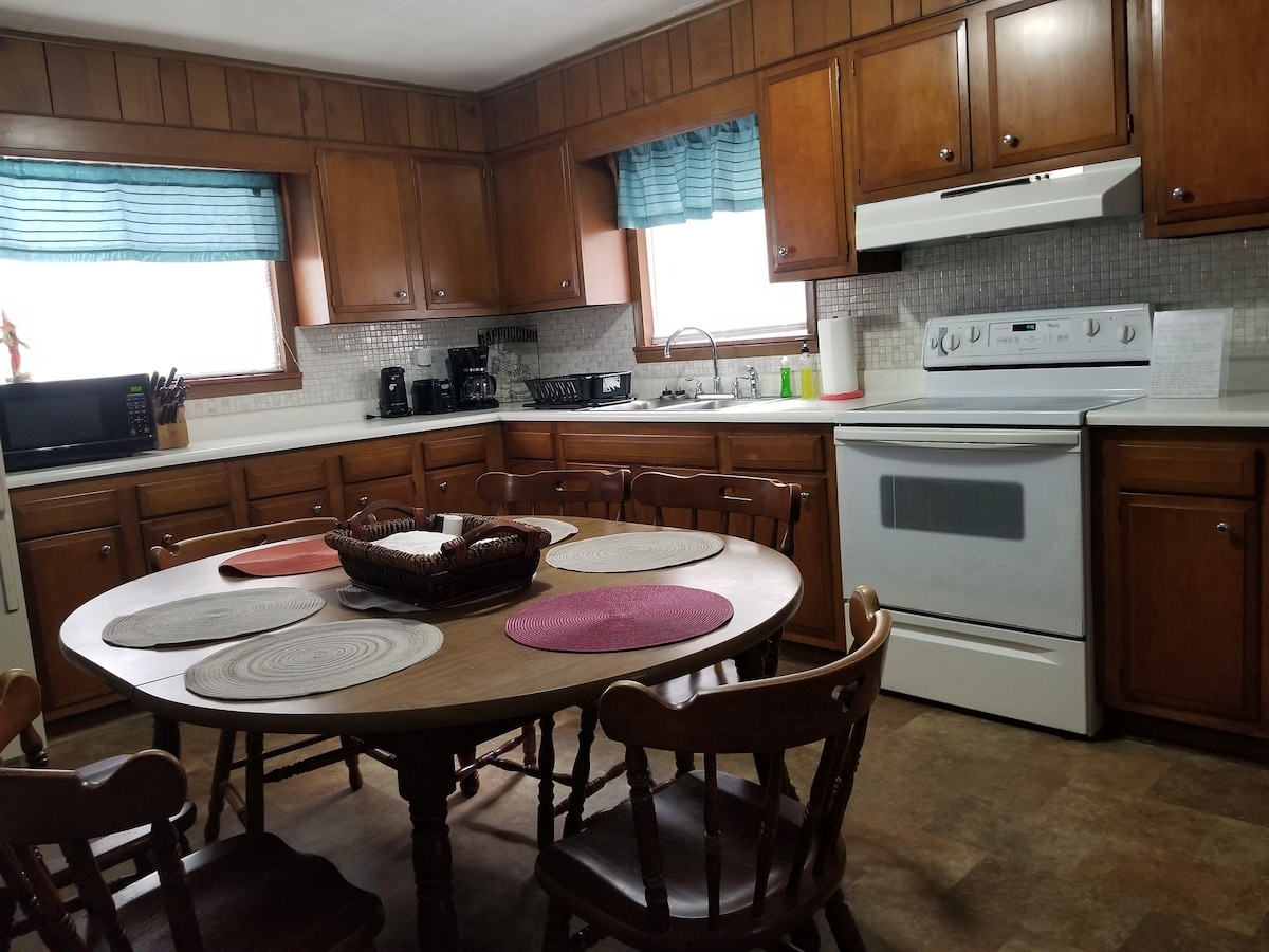 Ikamelo lokulala elithokomele elingu-1 ifulethi elinefenisha ephelele elinendawo yalo yokungena engaphansi kweKhaya lethu Elihle Lomlando e-Bluefield West Virginia. Sihlala phezulu. Izivakashi ezithulile, ezinenhlonipho kuphela. Amasevisi ahlanganisa i-wifi, umshini wokuwasha/wokomisa, ikhishi elinakho konke, ukudla okulula, iziphuzo, ikhofi netiye okunikeziwe Indawo enkulu yokudlela nekhishi elivulekile. Umbhede omkhulu ongu-queen size one-pillow top namashidi anezintambo ezingu-1200. I-tv enkulu yesigaba nesikrini esikhulu se-L. Nendawo yomlilo kagesi ngalezo zinsuku ezibandayo.