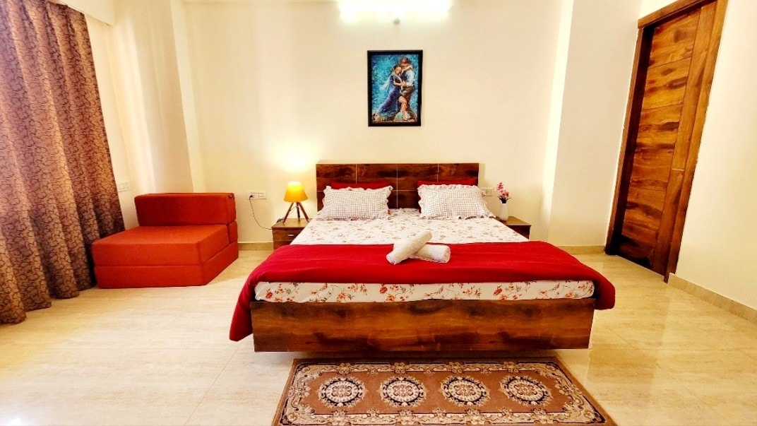 Jabulela ukuhlala okunethezekile ku-2BHK yethu enefenisha ephelele eduze noMfula i-Ganga e-Rishikesh. Itholakala esitezi sesine somakhi, ifulethi linekamelo lokulala elithokomele elinamabhalkhoni, igumbi lokuphumula elikhulu elinosofa elithokomele, nekhishi elinakho konke. Ukubuka i-Valley nengxenye yentaba kwenza kube nokuzola. Kukhona indawo yokupaka yamahhala, ilifti, i-Wi-Fi, nogesi oyibhekhaphu. Izitolo zokudla nokulethwa ku-inthanethi (Blinkit, Swiggy, Zomato) ziseduze futhi zilungele ukuhlala okunethezekile, okufana nokwasekhaya