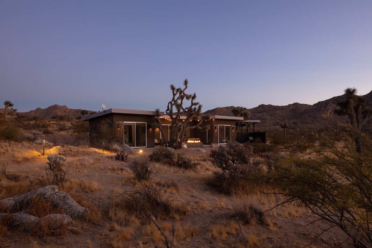 Balekela endaweni yethu yokuphumula eyisihlabathi emizuzwini embalwa ukusuka e-Joshua Tree National Park. Jabulela ukubuka intaba enhle kakhulu nendawo eyihlane egcekeni elingemuva elingunye we-acre elibiyelwe ngokuphelele elinobhavu wamanzi ashisayo okuphumula, umgodi womlilo we-propane, kanye nedome yokubuka izinkanyezi emangalisayo. Yidla ngaphandle ngaphansi kwezibani ezilengayo futhi ujabulele ubusuku obunokuthula basogwadule obuzungezwe imvelo. Ilungele imibhangqwana, imindeni, nabathandi bezinto ezintsha abafuna ukunethezeka, ubumfihlo, nokuzizwisa kweqiniso kwe-Joshua Tree.