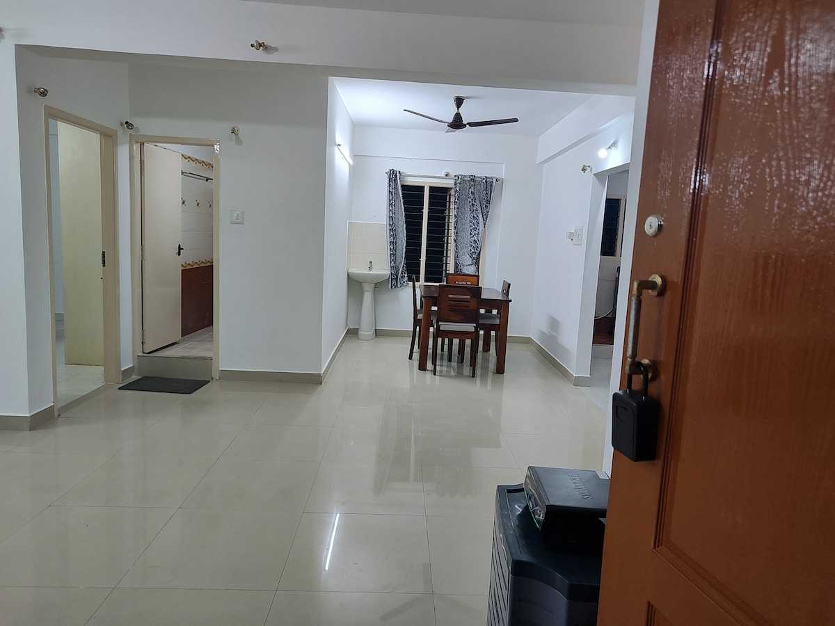!!! Atithi Devo Bhava !!!* Siyakwamukela ekhaya lakho elikude nasekhaya e-South Bengaluru! Lihlala endaweni yokuhlala enokuthula eduze ne-Kanakapura Road, leli fulethi elithokomele elinamakamelo angu-2 lilungele imindeni, izihambi zebhizinisi, noma ukuhlala kwesikhathi eside. Itholakala kalula ngebanga elifushane ukusuka e-Doddakallasandra Metro Station (Green Line) nezitobhu zamabhasi eziningi, ikhaya lethu linikeza ukufinyelela okulula ezingxenyeni ezisemqoka zedolobha.