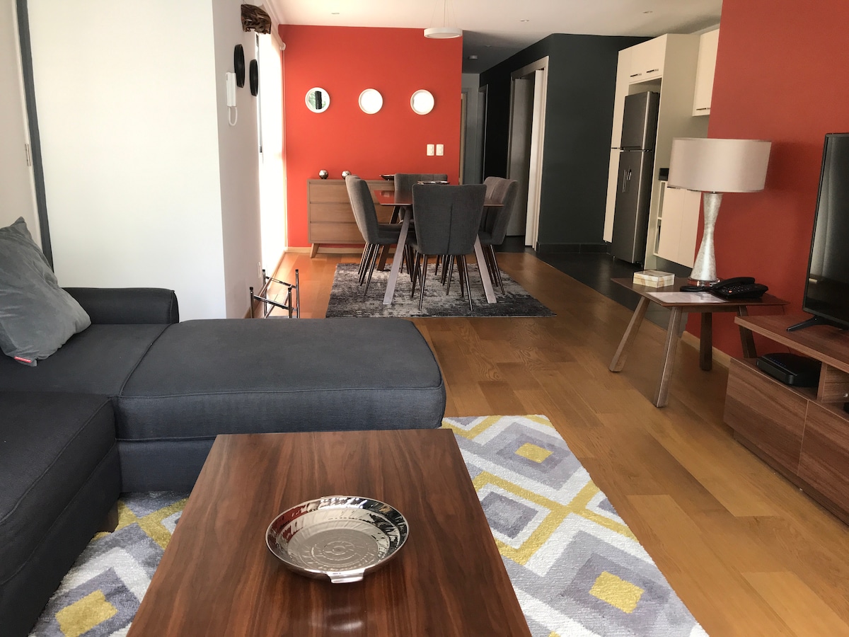 Ifulethi elisezingeni eliphezulu ELINE-TERRACE YANGASESE, elinakho konke, elinendawo YOKUPAKA YAMAHHALA NGAPHAKATHI EMAGCEKENI, ukugadwa kwamahora angu-24 NEKHESHI. Itholakala e-Colonia Cuauhtémoc, amamitha angu-200 ukusuka ku-Av. I-Paseo de la Reforma, i-avenue ebaluleke kakhulu edolobheni. Izinyathelo ezimbalwa ukusuka efulethini. Kukhona amathilomu, izindawo zokudlela, amakhemisi, izitolo zokuzisebenzela, njll. Ngemizuzu engu-15 uhamba ngezinyawo ungathola iBosque de Chapultepec nemizuzu engu-10 ngemoto eya e-Colonia Roma, e-Polanco nase-Centro Histórico.