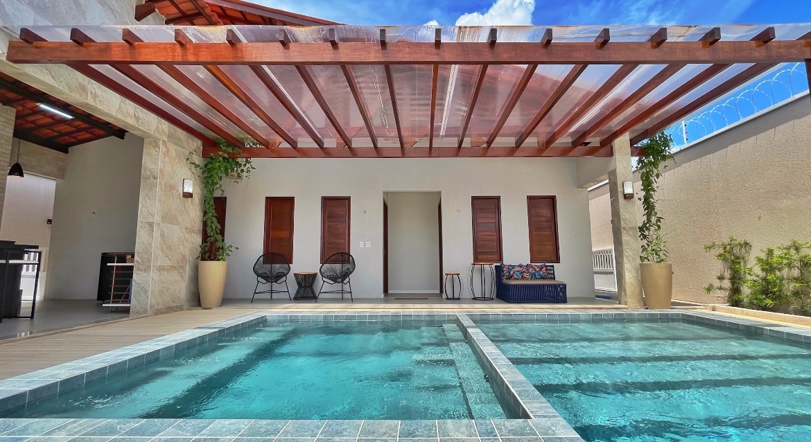 Ikhona elikhethekile lalabo abafuna ukuhalalisela ukuphila ngesitayela, ukunethezeka nemvelo. E-W.A Espaço & Lazer, uzothola indawo ekahle yezinsuku zokuzalwa, imibuthano noma impelasonto yokuphumula! Okuvelele okuhehayo: ✅ Indawo yokubhukuda ene-whirlpool nempophoma Ispout samatshe egolide amhlophe✅ emvelo ✅ Idekhi yasemaphandleni enetafula lamapulangwe ✅ Indawo eluhlaza enesihlahla sezithelo (isihlahla se-cashew🌳) ✅ I-gazebo ekahle yezithombe nokuphumula ✅ Amakamelo okulala ane-en-suite ✅ Ikhishi elinakho konke nendawo yokudla ene-barbecue