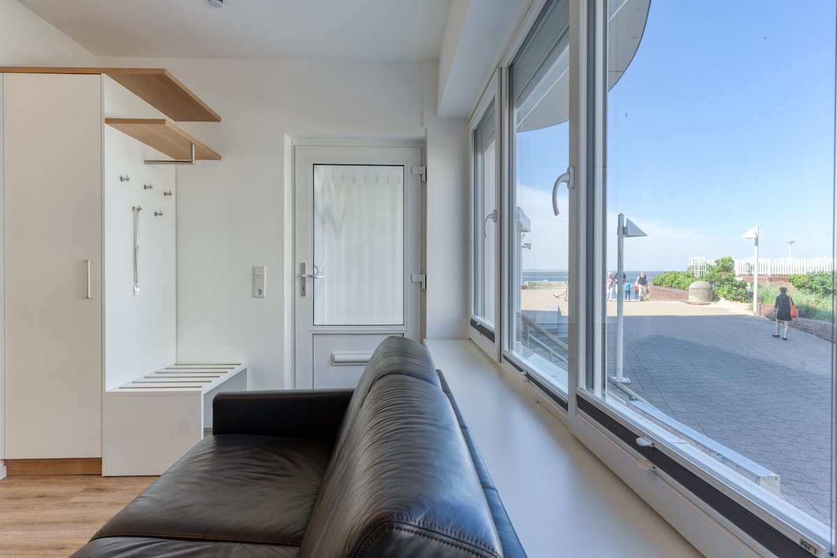 Itholakala phansi, ifulethi lalungiswa ngokuphelele ngo-2020 futhi linefenisha entsha-okuhlanganisa ikhishi lekhwalithi ephezulu. Umqondo wekamelo ushintshashintsha nezimo ngokwedlulele. Phumula kanye/ noma usebenze kude (isihlalo sehhovisi, i-24 intshi yokuqapha, njll.). Indlu isemgqeni wokuqala wolwandle futhi ingenye yezindawo ezinhle kakhulu e-Norderney. Ngomhla ka-32m² kukhona iphaseji, ikhishi, igumbi lokugezela, igumbi lokuphumula elinombhede wezindawo zokuphumula kanye nesofa yezindawo ezingu-3.