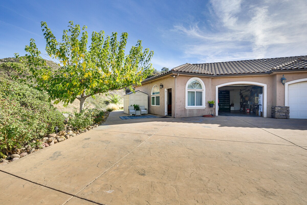 Phumula kule ndawo yokuvakasha yama-acre angu-10! Hlola okuthi “LoveLeeAcres”. Jabulela ukuqwala izintaba ezilungele izingane ukuya ezindaweni ezinhle, izihlahla ze-oki, ama-swings, i-trampoline, i-hammock, inkathi yonyaka ngenhla kwendawo yokubhukuda, umugqa we-zip wezingane, izinkukhu, i-bunny nengulube ongayibamba futhi uyondle. Sizokuthumela ebhishi eliqhele ngemizuzu engu-30 ngamathoyizi esihlabathi, amabhodi e-boogie, izihlalo nesambulela, buyela ekhaya kubhavu wamanzi ashisayo! Izivini ezingu-19 nezitolo zewayini ezingamamitha angu-10! Ihora elilodwa kuphela ukuya e-Disneyland, e-Sea World, e-Legoland, e-Universal Studios, emafulegi ayisithupha, ezindaweni zokubhukuda nokunye okuningi!