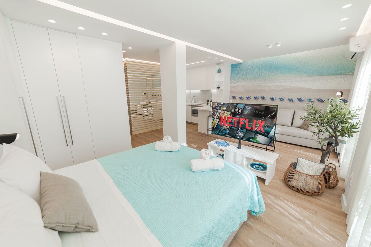 Jabulela okokuzithokozisa okuyisitayela kule condo ephakathi nendawo eyakhiwe ngo-2021, enendawo yokubhukuda ehlanganyelwayo. Kuqhele ngemizuzu engu-12 kuphela ukusuka e-Acropolis (4km) nase-Syntagma Square (4.5 km). Imizuzu engu-10-15 ukuya e-Bolivar Beach (10km) nase-Piraeus Port (6.7km). Eduze nezimakethe, indawo yokuthenga, nezindawo zokudlela. Umugqa we-Green Metro, ibhasi, netekisi kuqhele ngemizuzu embalwa. Umbhede omkhulu onomatilasi othokomele, nosofa othokomele. Ifulethi elinakho konke, elinovulande omkhulu , ne-TV engu-65’. Bhukha uhambo lwakho nami.
