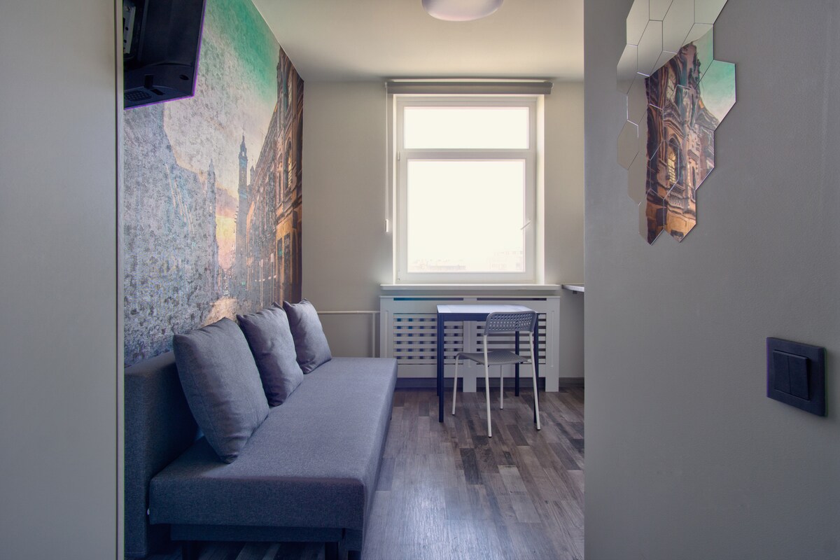 Jabulela le-studio esiyingqayizivele nesesitayeleni esisezinyathelweni ezimbalwa ukusuka enkabeni ye-Vilnius Old Town. Zungezwe amathilomu athandekayo, amabha athokomele, izitolo zokudla zasendlini kanye nepaki elinombono omuhle phezu kwe-Vilnius le-studio samamitha-skwele angu-38 ihlanganisa ikhishi elihlotshiswe ngokugcwele, I-WIFI yejubane eliphezulu kakhulu (500MB/s), i-TV ene-Netflix nombhede ophindwe kabili okhululekile. Kutholakala esakhiweni samagugu esineminyaka engu-120 ubudala, kuqhele ngebhasi amane kuphela ukusuka e-Vilnius Airport nemizuzu engu-10 ukuya esiteshini sesitimela/sebhasi.