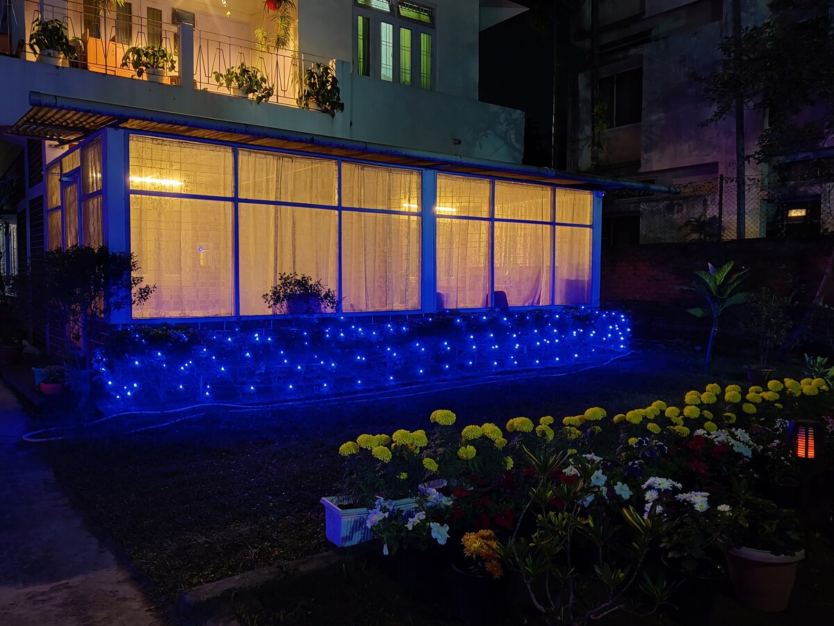 I-2BHK yesimanje futhi ecatshangwe kahle enama-balcony esakhiweni se-G +2 itholakala cishe ngamakhilomitha angu-2.5 ukusuka emagqumeni ethempeli elidumile lase-Kamakhya futhi uhamba ngezinyawo imizuzu engu-5 ukusuka emfuleni i-Mighty Brahmaputra. I-Gazebo iyatholakala Ezivakashini ezengeziwe, umbhede/umatilasi unganikezwa ngezindleko ezengeziwe ze-INR 300.00 ubusuku ngabunye/i-pax Ukudla kwase-Assamese okwenziwe kwasendaweni kuyatholakala ngokukhokhelwa! Izincekukazi ezifunwayo ziyatholakala I-Wifi yamahhala nokupaka kwamasondo angu-4 no-2 kuyatholakala