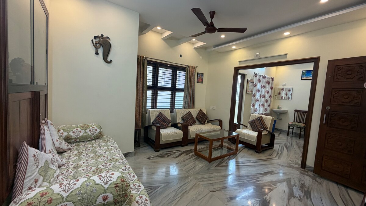 Siyakwamukela eholidini lakho lase-Mangalore! Kungakhathaliseki ukuthi uhamba nomndeni ukuze uye emshadweni, uvakashela ozakwenu emsebenzini ngephrojekthi, noma uhlola ugu nabangane, i-2BHK guest suite yethu inikeza ibhalansi ephelele yokuphumula kwangasese nokuphila komphakathi. Njengoba utholakala enkabeni yendawo yaseKottara, ukhona endaweni ekahle yokujabulela okungcono kakhulu kwedolobha.